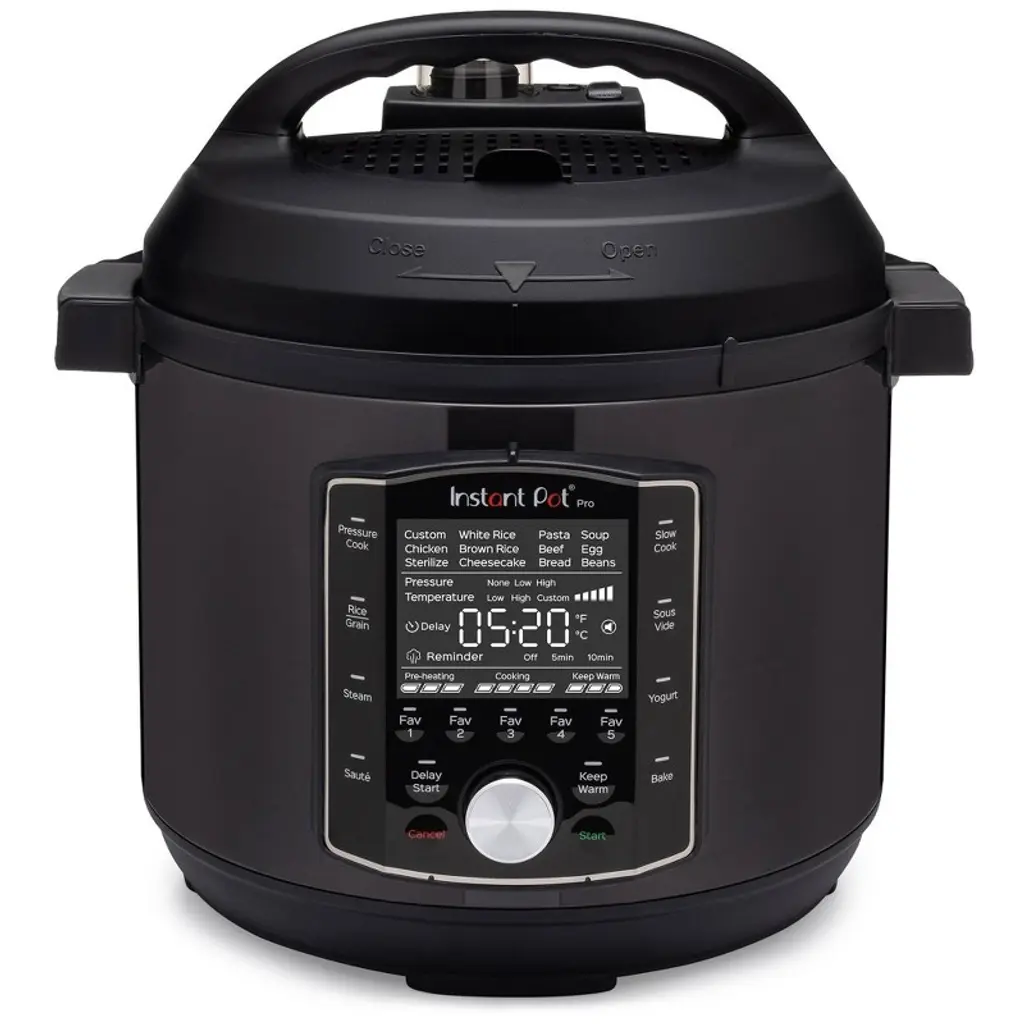 Experience the next generation of convenience with Instant Pot® Pro. It starts with 28 smart cooking programs and adds 5 new Favorite program settings. Spend less time in the kitchen with 20% faster pre-heating and up to 70% faster cooking overall. It replaces 10 kitchen appliances: slow cooker, pressure cooker, sous vide, sauté pan, sterilizer, yogurt maker, food warmer, cake baker and steamer. The upgraded gentle steam release is quieter and less messy with the diffusing cover. And the Pro is filled with thoughtful extras like Easy Grip handles on the inner pot, a large LCD display that’s easy to read, and an auto-sealing lid. The Instant Pot Pro offers the quality, convenience and versatility you’ve come to expect from Instant – discover amazing. Built-in safety features include Overheat Protection, safety lid lock and quick release button for worry-free cooking. And you’ll always know what your Instant Pot is doing, as it features an intuitive cooking progress bar that shows you every step, from preheating, to cooking, to keep warm, so you’re never left guessing. The upgraded inner pot is made from premium quality 304 grade (18/8) stainless-steel and features silicone handles for easy gripping, as well as a flat, tri-ply bottom for the ultimate searing and sautéing. The new gentle steam release diffusing cover reduces noise and prevents countertop splash.