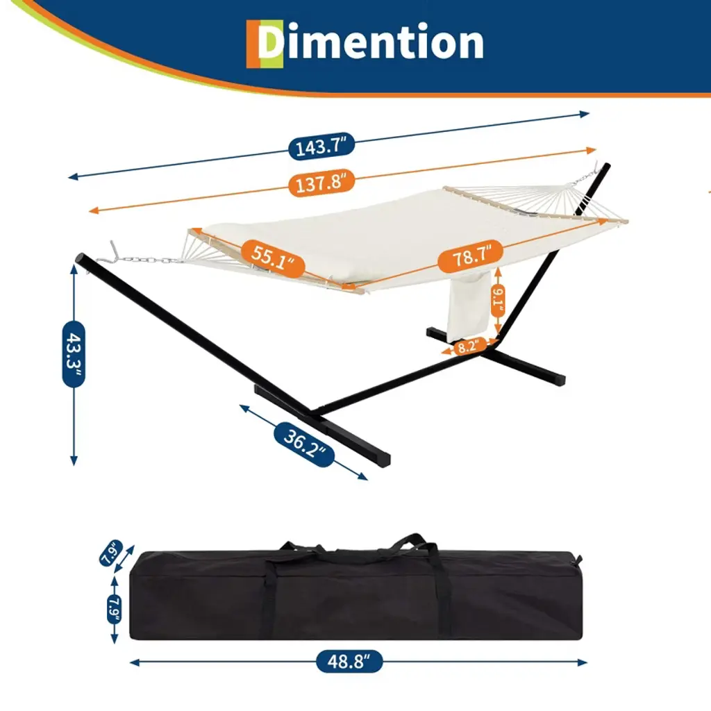 Instant-setup 2-person Hammock With Steel Stand – Portable Outdoor Hammock For Camping, (White & Black Stripe)