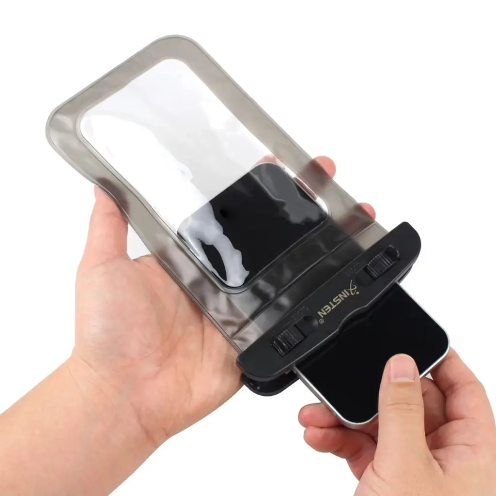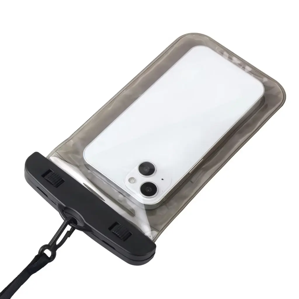 Waterproof up to 3 meters; dedicated soft TPU with tensile strength, acting as a buffer with drop resistance protection. Color: Black/Black. Material: PVC. Fully expanded inner size: 16.5 X 9.9 cm/ 6.5 x 3.9 inches. Protects you mobile phones against water, dust, dirt and sand. Floats safely if dropped into water. Locked and sealed tightly to protect your phone from fluid. Includes:. 1 x Waterproof Bag. 1 x Lanyard. 1 x User Manual. Accessory Only, cell phone / device not included. NOTE: Waterproof carry pouch is designed to provide a waterproof environment to your devices up to 3 meters into the water. Please do not use it if it's deeper than 3 meters into the water. Note: For best fit please remove your phone from case before putting in the waterproof case. Tips for taking photos in water: Use phone button instead of the screen touch for better moment capturing.