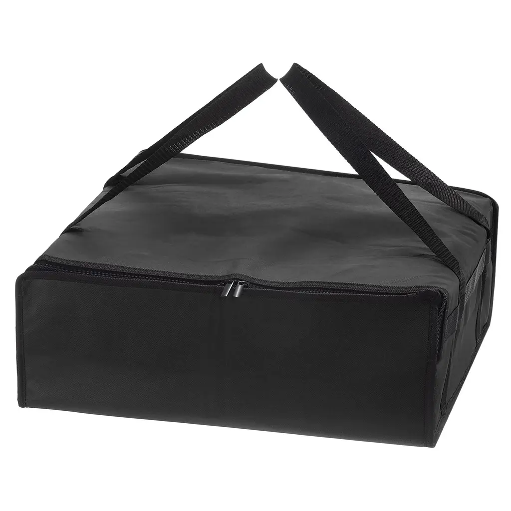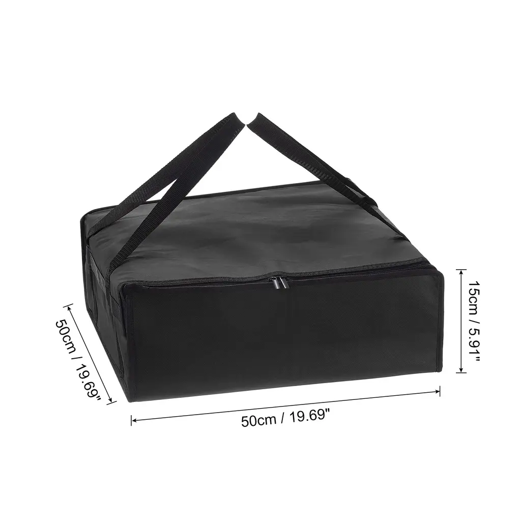 Good Material: Crafted from durable non-woven fabric, this pizza bag ensures long-lasting use and easy maintenance. The sturdy material provides excellent insulation to keep pizza hot and fresh.Insulation Performance: Designed as an insulated cooler bag, this pizza bag effectively retains heat, preserving the temperature of your pizza for extended periods. Say-goodbye to cold deliveries!Convenient Portability: Equipped with sturdy handles and a lightweight design, this insulated pizza bag offers convenience during transportation. Easily carry multiple pizza without any hassle.Wide Application: Versatile and practical, this insulated bag is not limited to pizza only - it's good for delivering a variety of hot or cold foods. Suitable for food transfer services and catering businesses.Specification:Material: Non-woven FabricColor: BlackSize: 50 x 50 x 15 cm / 19.69 x 19.69 x 5.91" (L x W x H)