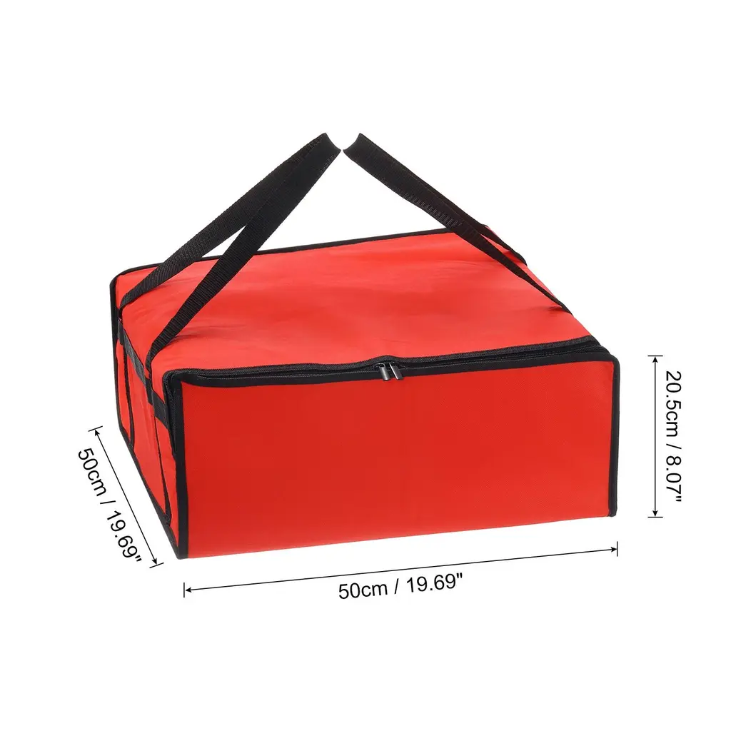 Good Material: Crafted from durable non-woven fabric, this pizza bag ensures long-lasting use and easy maintenance. The sturdy material provides excellent insulation to keep pizza hot and fresh.Insulation Performance: Designed as an insulated cooler bag, this pizza bag effectively retains heat, preserving the temperature of your pizza for extended periods. Say-goodbye to cold deliveries!Convenient Portability: Equipped with sturdy handles and a lightweight design, this insulated pizza bag offers convenience during transportation. Easily carry multiple pizza without any hassle.Wide Application: Versatile and practical, this insulated bag is not limited to pizza only - it's good for delivering a variety of hot or cold foods. Suitable for food transfer services and catering businesses.Specification:Material: Non-woven FabricColor: BlackSize: 50 x 50 x 15 cm / 19.69 x 19.69 x 5.91" (L x W x H)