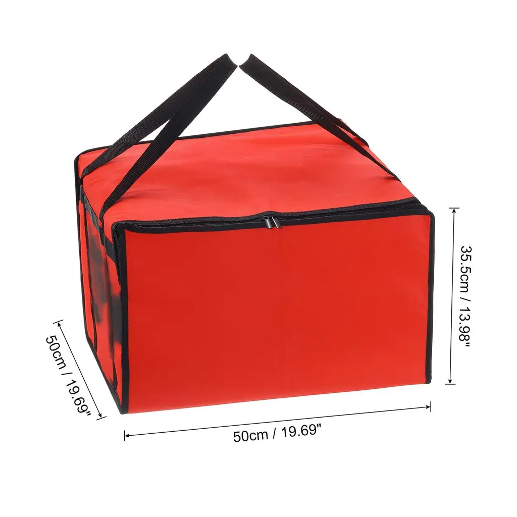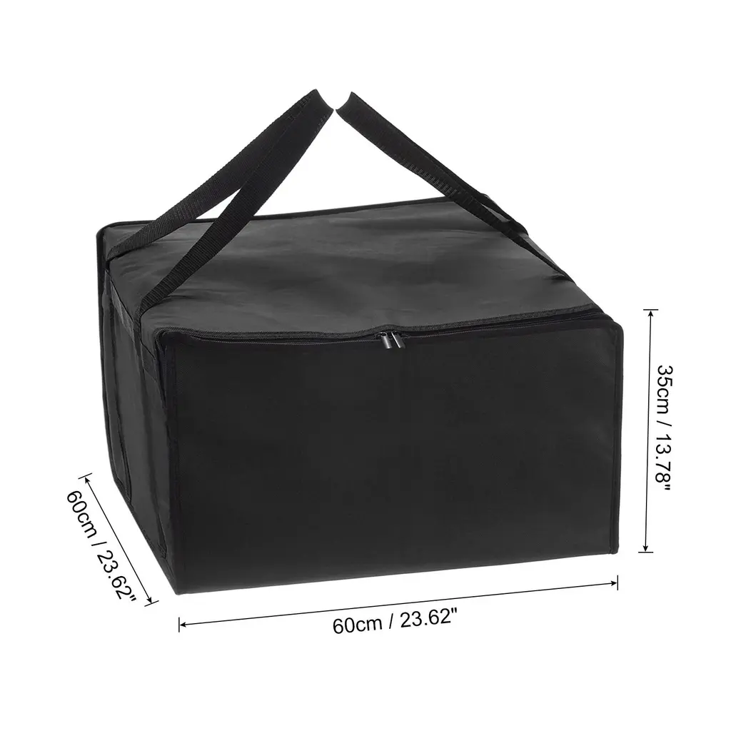 Good Material: Crafted from durable non-woven fabric, this pizza bag ensures long-lasting use and easy maintenance. The sturdy material provides excellent insulation to keep pizza hot and fresh.Insulation Performance: Designed as an insulated cooler bag, this pizza bag effectively retains heat, preserving the temperature of your pizza for extended periods. Say-goodbye to cold deliveries!Convenient Portability: Equipped with sturdy handles and a lightweight design, this insulated pizza bag offers convenience during transportation. Easily carry multiple pizza without any hassle.Wide Application: Versatile and practical, this insulated bag is not limited to pizza only - it's good for delivering a variety of hot or cold foods. Suitable for food transfer services and catering businesses.Specification:Material: Non-woven FabricColor: BlackSize: 50 x 50 x 15 cm / 19.69 x 19.69 x 5.91" (L x W x H)
