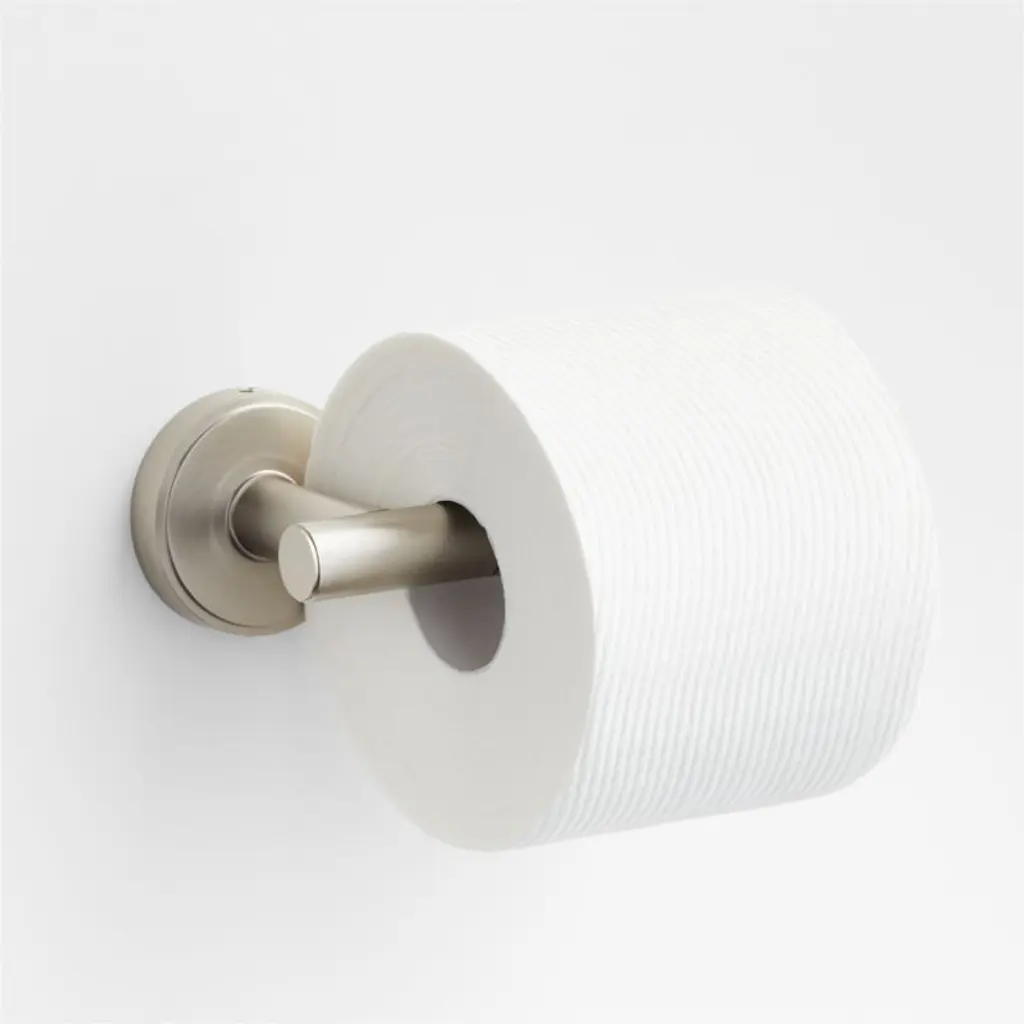 This simple toilet tissue holder is a piece of basic bathroom hardware. Durable white plastic housing conceals mounting hardware. Easy to install and reload.Highlights:Color: WhiteContemporary designABS plasticScrew on mountingSnap on and slide covers conceal mounted screws
