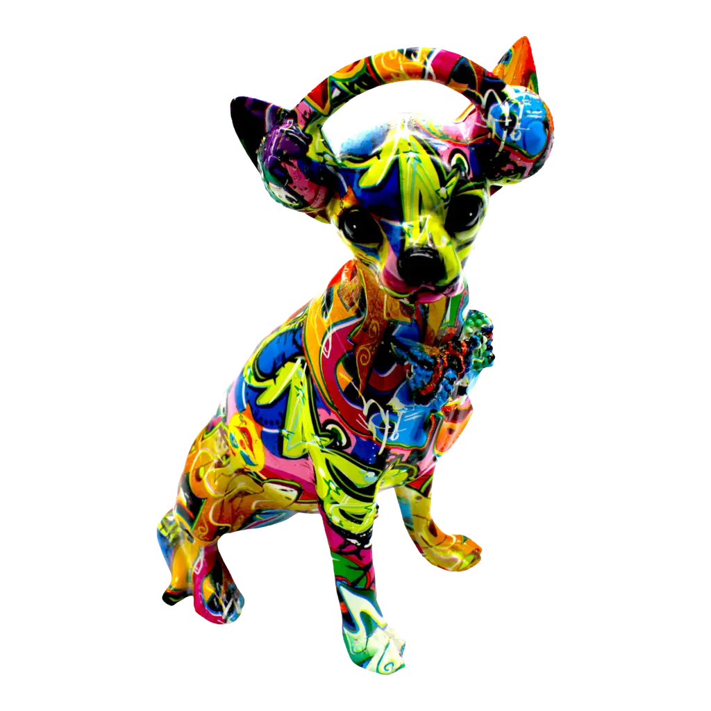This fun and playful Street Art Chihuahua Standing On Hind Legs is the perfect way to add a bit of whimsy to your home or office. Crafted from resin, this unique piece of art features a Chihuahua standing on its hind legs and is sure to draw some attention. Perfect for any animal lover or art enthusiast, this street art piece is sure to be a conversation starter. Whether you want to add a bit of charm to your space or gift a unique piece of art, this Street Art Chihuahua is sure to be a hit! Specifications: - Imported - Material: Resin - Color: Multi-Color - Weight: 2 lbs. - Dimensions (inches, LxWxH): 5.5 x 4.25 x 12