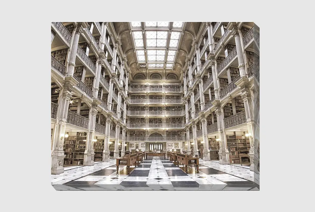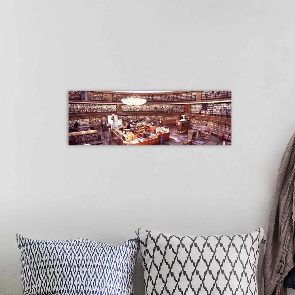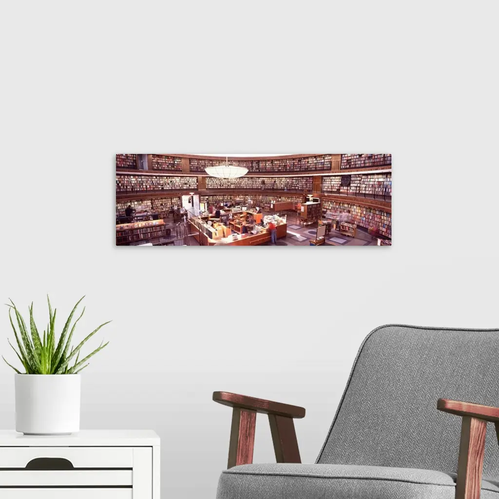 Interiors of a library, Stockholm Public Library, Stockholm, Sweden wall art for home and office decor. Discover canvas art prints, photos, mural, big canvas art and framed wall art in GreatBigCanvas.com's varied collections.