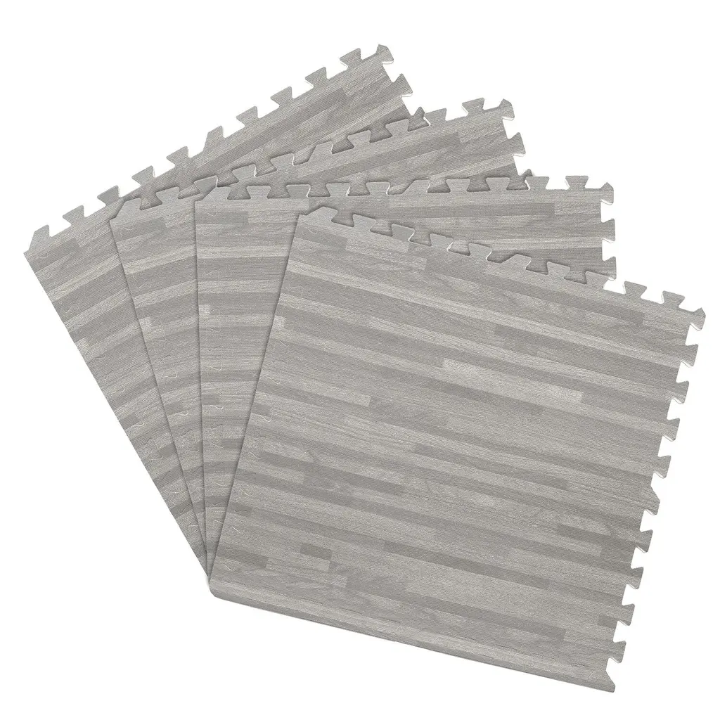 Have boring, hard floors in your space? Elevate your comfort and style with our Interlocking Foam Anti-Fatigue Tiles! These innovative tiles are not only functional but also add a touch of creativity to any room. Featuring a seamless interlocking design, these tiles are incredibly easy to assemble, allowing you to create a customized look in no time. Measuring 24 inches by 24 inches, each tile covers a generous 4 square feet of floor space, giving you plenty of coverage for your needs. With four tiles per pack and eight finishing borders, you'll have everything you need to create a polished, finished look. Made from durable EVA foam, our Anti-Fatigue Tiles are designed to withstand the test of time. Whether you're setting up a children's play area, a garage, a workshop, an exercise space, a kitchen, a bathroom, or any other area where you stand for extended periods, these tiles will help reduce fatigue and provide cushioned comfort to your feet and joints. Not only are these tiles functional, but they're also easy to clean and water-resistant, making maintenance a breeze. Plus, with different styles available, you can choose the one that best fits your aesthetic, whether it's a sleek and modern design or a playful and fun pattern. Say goodbye to dull, hard floors and hello to comfort and style with our Interlocking Foam Anti-Fatigue Tiles. Upgrade your space with these versatile and creative tiles and experience the difference in comfort and style. Get your pack today and transform your space into a cozy, cushioned haven that's sure to impress!