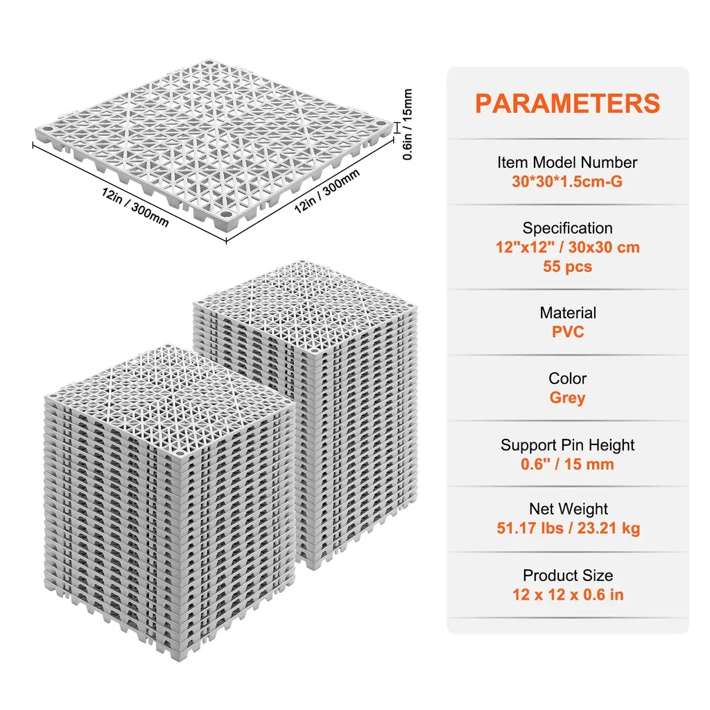 Interlocking Tile 50pcs Blue, Drainage Tiles Soft Pvc Interlocking Drainage Floor Tiles, Non-Slip Drainage Holes For Restroom - Grey - 55pcs