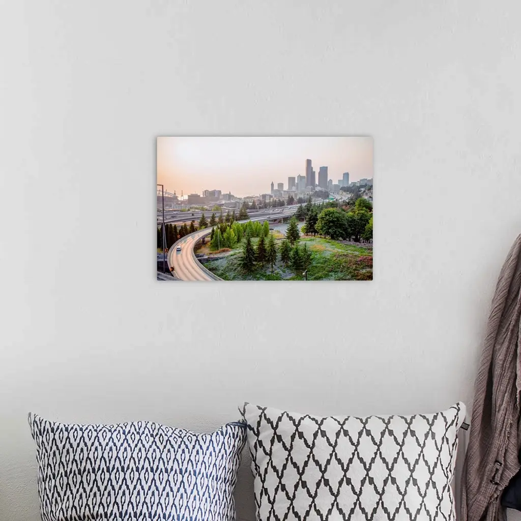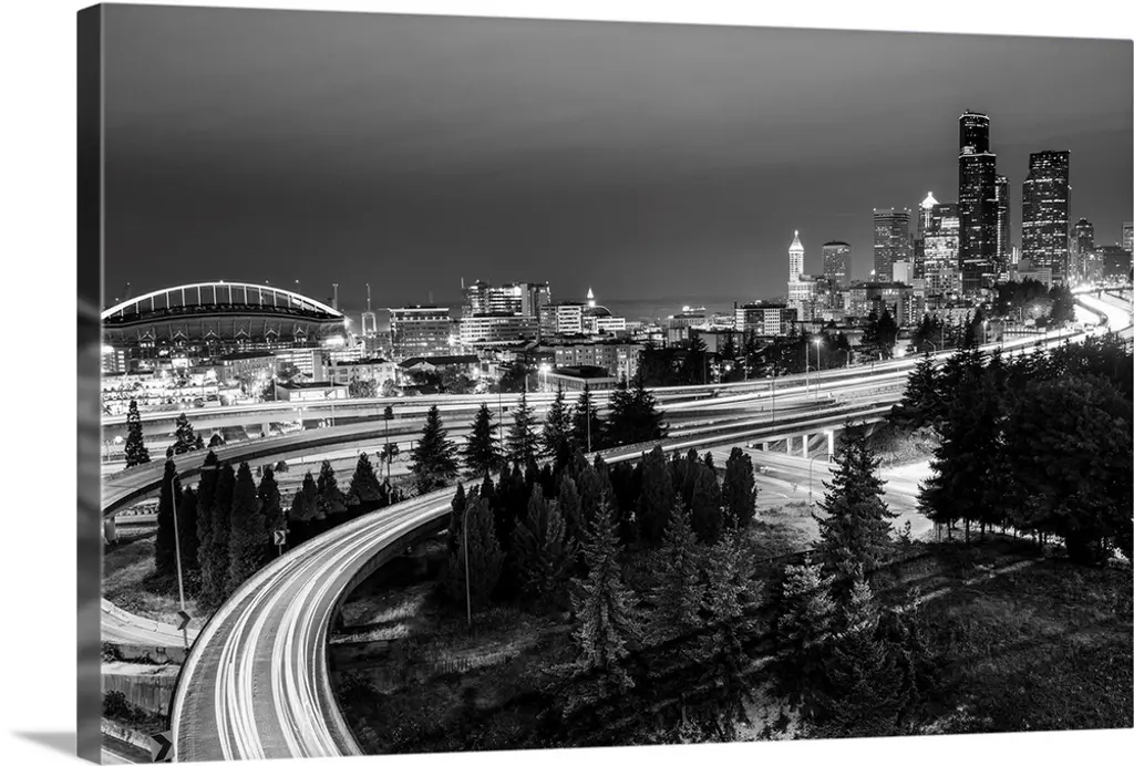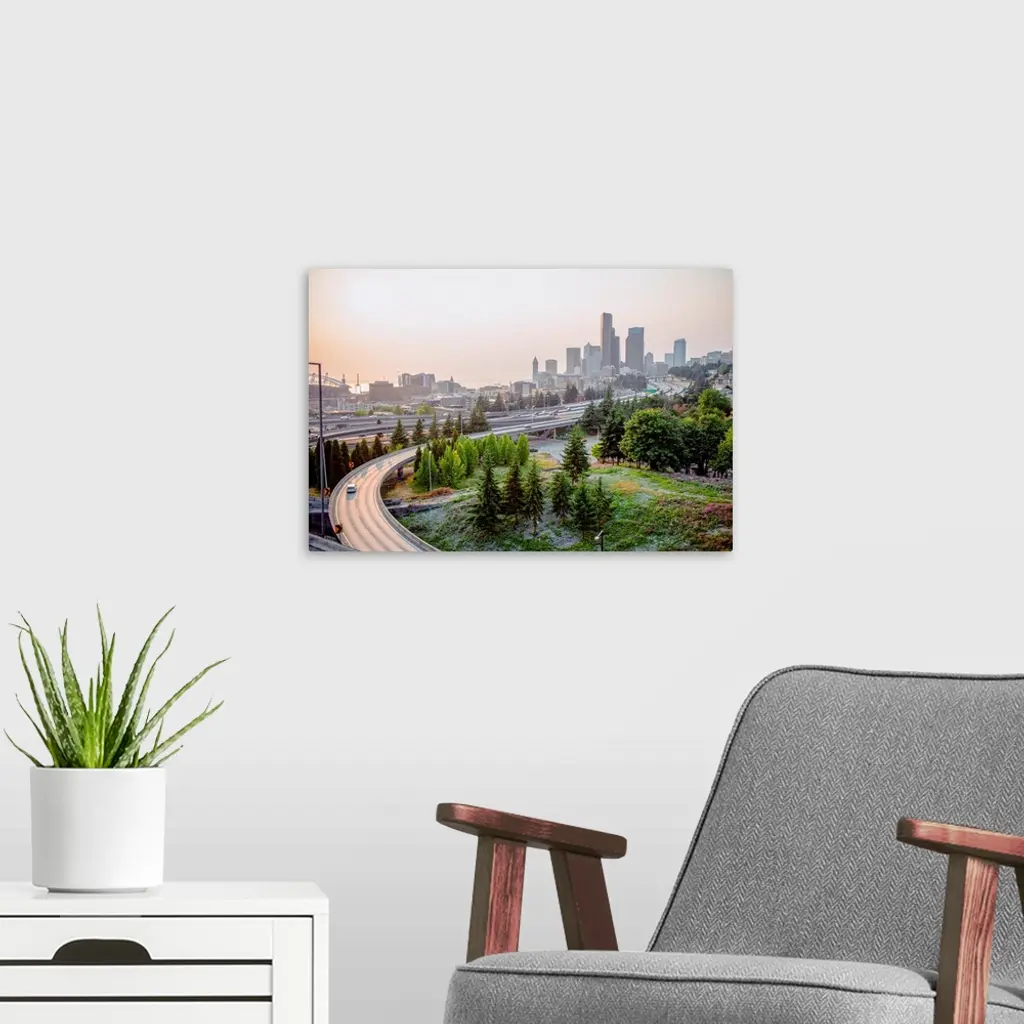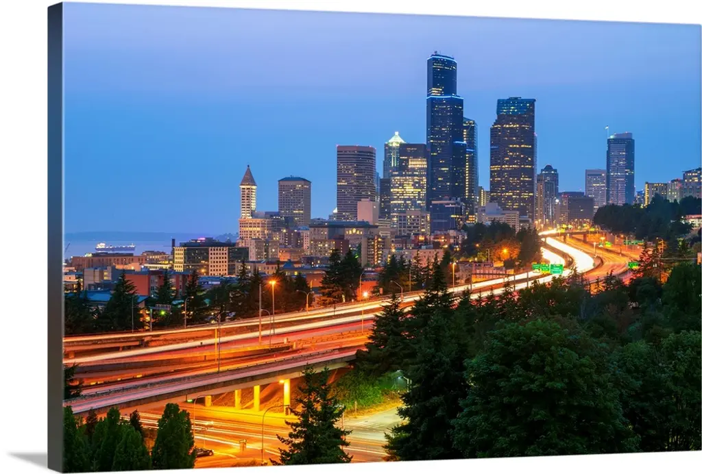 View of I-5 as it stretches into downtown Seattle, Washington.