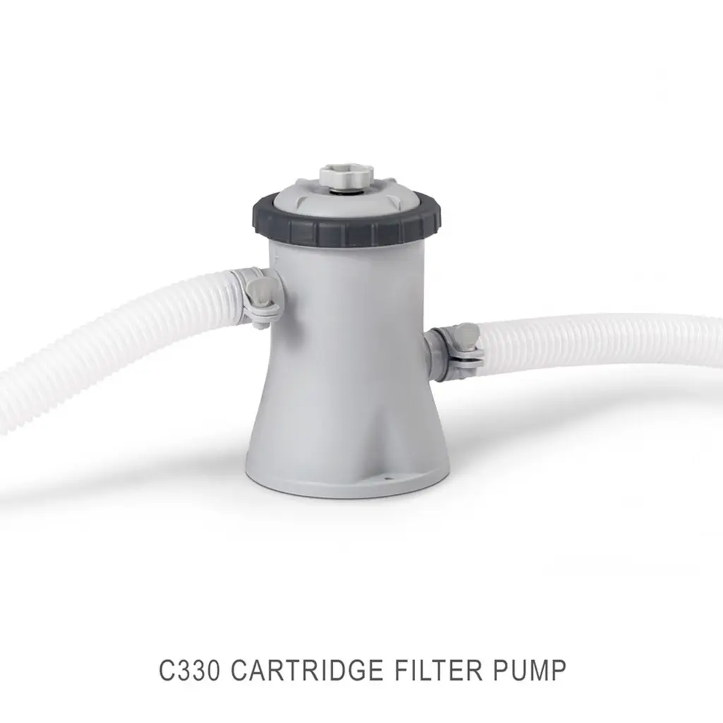 The Intex 1.25 Inch Accessory Hose is suitable for Intex filter pumps and saltwater systems that use 1 .25-inch hoses including pumps with a gallon per hour range of 530 GPH 1,000 GOH. With a 59-inch length, this accessory hose provides ample length and is easy to install. Be prepared for any issues which may arise and make sure to have an extra hose available. This hose is suitable for Intex filter pump models:607 and 637. We know that wear and tear can happen to anything. Even the Intex 1.25" Diameter Hose for your pool can take a beating from time to time. We carry the Intex replacement pump hose, so you can replace that part when the time comes. Efficient filtration is essential for a quality swimming experience. The Intex 1000 GPH pool pump is easy to install, just hook up to the hoses and plug in. This pump increases water circulation and filtration and guarantees a cleaner pool. Designed for all 10, 12, 14, 15, and 16-foot Intex above-ground swimming pools. Also great for Sand-n-Sun, Aqua-Leisure and other pools with 1.25-inch diameter hose connections. The GFCI (ground fault circuit interrupter) feature on the 1000 GPH pump provides additional safety and protection. Your pump will shut off automatically if the electrical current is exposed to water.