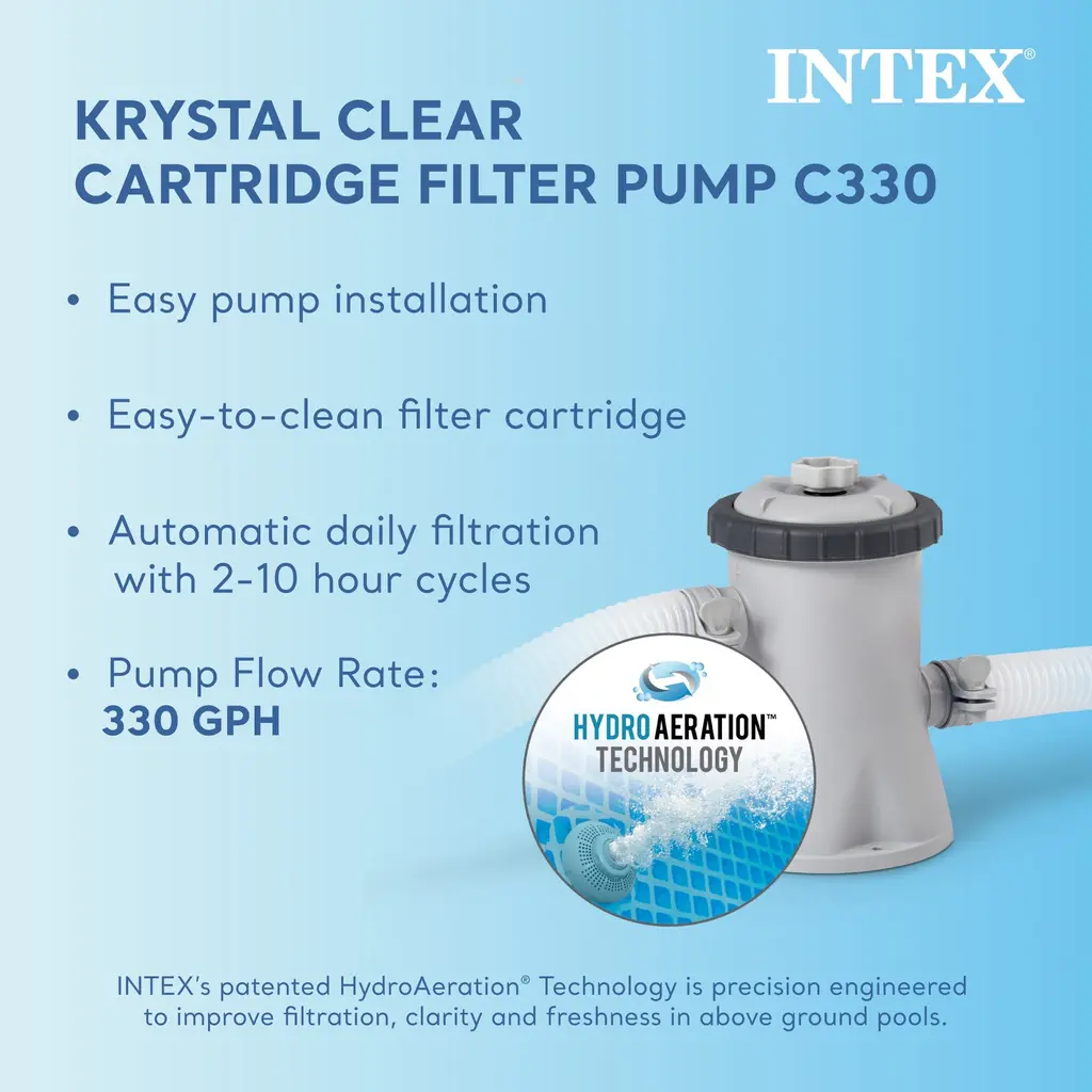 At a full 10 feet wide and 30 inches in height, the Intex Metal Frame Pool Set is ready for a big splash to help you enjoy the outdoors this season. Easy to assemble and maintain, this Metal Frame Set pool is great for having friends and family enjoy time outdoors. Plus, this set includes the Intex 330 GPH filter pump and a Type "H" filter cartridge to help keep your pool water safe and clean all season long! When it comes to getting in and out of your above ground swimming pool, safety and convenience are your number one priorities, which is why Intex created the Above Ground Pool Ladder for 48-Inch Wall Height Pools. Don't risk injury jumping in and out of your pool when this ladder makes using your pool easier and safer. This double-sided Intex pool ladder features high-impact, slip resistant plastic steps for a safe platform, as well as a coated steel frame to help prevent corrosion and to allow your ladder to stand up to all kinds of weather. Intex 10 x 2.5-Foot Frame Swimming Pool Set with Filter Pump Sturdy metal-frame above-ground swimming pool for lots of water fun Round 10 by 2.5 foot pool is the perfect size for backyard fun Includes the Intex 330 GPH filter pump and a Type "H" filter cartridge to help keep your pool water safe and pure all season long An affordable and easy-to-set-up alternative to more complicated steel-walled pools, and a more durable alternative to inflatable models The drain plug accepts a garden hose to drain water away from the pool area as desired Much easier to disassemble than any rigid steel-walled pool so you can store your Easy Set Pool during the off-season and extend your pool's life indefinitely Specifications: Pool type: Metal-frame above-ground Material: Metal and plastic Height: 2.5 feet Diameter: 10 feet Capacity: 4 people Capacity: 1,718 gallons of water Space required: 144 square feet Liner included: Yes Filter pump included: No Cover included: No Ladder included: No Color: Blue Dimensions (L x W x H): 10 x 10 x 2.5 feet Weight: 49 pounds Intex Above-Ground Pool Ladder for 48-Inch Wall Height Pools Swimming pool ladder designed to make it easy to climb in and out of the pool High-impact, slip-resistant steps provide durability and a solid platform Sturdy pool ladder that will make climbing safe Crafted to work well with above-ground pools Designed to work with 48-inch wall heights Coated corrosion resistant steel frame ensures longevity Provides a safer swimming environment Material: Stainless steel Weight capacity: 300 pounds Color: Silver Weight: 17.75 pounds