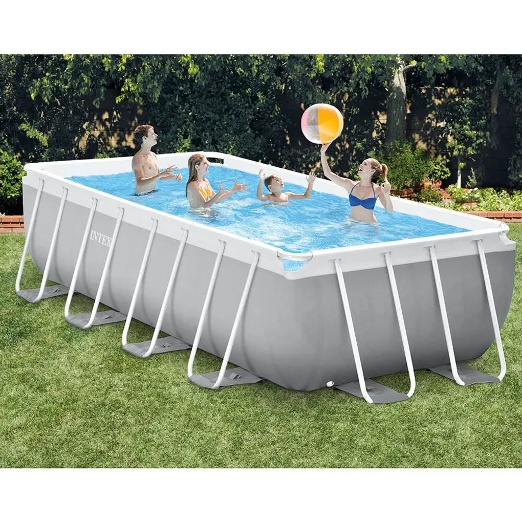 Beat the heat and make a splash in this Intex 12 x 2.5 Foot Metal Frame Above Ground Pool and Filter. At 12 feet wide and 30 inches in height, this metal frame pool is great for having friends and family over for to cool off. It's easy to assemble and maintain and fits perfectly on a flat surface in your backyard. It's made of strong and durable material, Intex's high-molecular Super-Tough PVC, which is highly resistant to damage from abrasion, impact, and sunlight. The pool set includes an Intex 530 gallon per hour filter pump, 1 Type "A" filter cartridge to keep your pool sparkly clean, and a helpful instructional DVD to help get you started. Your backyard will be the hot spot on the block with this Intex 12 x 2.5 Foot Metal Frame Above Ground Pool and Filter summer after summer. This package will also include the Intex Pool Maintenance Kit and a 6 pack of Intex Pool Easy-Set Type A Replacement Filter Cartridges. Intex 12 x 2.5 Foot Metal Frame Above Ground Pool with Filter, Intex 28002E Cleaning Maintenance Swimming Pool Kit w/ Vacuum Skimmer & Pole, and a 6 pack of Intex Pool Easy-Set Type A Replacement Filter Cartridge An affordable alternative to more complicated steel walled pools, and a more durable alternative to inflatable models Provides both value and convenience for years of family enjoyment Includes 1 type "A" filter cartridge Easy to assemble, ready for water in just 30 minutes Dual suction outlet fittings improve water circulation resulting in better water hygiene and clarity Included 530-gallon-per-hour filter pump helps keep your water sparkling clean Filter is equipped with safety shut off if electrical current is exposed to water Walls are made of Intex's tough PVC, resistant to damage from abrasion, impact, and sunlight Drain plug accepts a garden hose to conveniently drain water away Specifications: Material: PVC Capacity: 6 people Capacity: 1,718 gallons Liner included: No Filter pump included: Yes Cover included: No Ladder included: No Color: Blue Dimensions (L x W x H): 144 x 144 x 30 inches Weight: 55 pounds