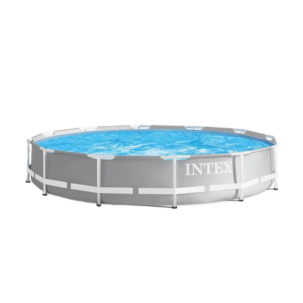 Beat the heat and make a splash in this Intex 12ft x 30in Prism Frame Above Ground Pool. At 12 feet wide and 30 inches tall, this above ground pool is great for having friends and family over to cool off. It's easy to assemble, easy to maintain, and fits perfectly on a flat surface in your backyard. It's made of strong and durable PVC material, which is highly resistant to damage and is puncture-resistant from abrasion, impact, and sunlight. The metal frame is powder-coated for rust resistance and the filter pump is equipped with a safety feature to shut off the pump if the current is exposed. Included with the pool is the Intex robot vacuum cleaner. The included robotic pool vacuum keeps your above-ground pool's water crystal clear and uncloudy, letting you dive in on a whim and take the edge off the dog days. Its built-in filter siphons the water down to 0.15mm, trapping dust, dirt, leaves, and more for convenient disposal in the removable half-gallon filter basket. The pool does not include a pump. A 530 GPH Intext pump is recommended. Your backyard will be the hot spot on the block with this Intex 12-foot x 30-inch Metal Frame Above Ground Pool Set summer after summer. Disclaimer: Please review your HOA rules and restrictions before purchasing this product. Not all housing agencies permit private above-ground pools. Intex 12ft x 30 in Prism Frame Above Ground Pool designed for amazing levels of fun and relaxation for ages 6 and up (Pump not included) Sturdy metal-frame above-ground swimming pool which is powder-coated for rust resistance with a stylish liner Round above ground pool designed to allow for relaxation and fun for the whole family An affordable and easy-to-set-up alternative to more complicated steel-walled pools, and a more durable alternative to inflatable models Super strong laminated sidewalls that are reinforced with an all-around band to keep frame legs firmly in place Constructed with puncture-resistant, 3-ply material with heavier gauge liner Ready for water in 30 minutes with the easy setup instructions The drain plug accepts a garden hose to drain water away from the pool area as desired Much easier to disassemble than any rigid steel-walled pool so you can store your pool during the off-season and extend your pool's life indefinitely Includes the pool, robot vacuum cleaner, and instructional DVD for setup and maintenance Recommended ages: 6+ Material: Steel Height: 2.5 feet Diameter: 12 feet Capacity: 4-6 people Water capacity at 90%: 1,718 gallons Filter pump included: No Cover included: No Ladder included: No Color: Gray Dimensions (L x W): 12 Ft x 30 In (Water Depth is 24 In) Weight: 50 pounds Intex 700 Gal Per Hour Above Ground Pool Cleaner Robot Vacuum w/ 21 Ft Hose Keep your backyard above-ground pool ready for a dip at all times without having to add a pool-boy to the payroll Automatic robotic rover patrols pool floor and walls to siphon up leaves, dirt, sand, and other unwanted guests Processes up to 700 gallons per hour, making it ideal for maintaining most pools Internal mesh filter traps particulates down to 0.15mm and features a 0.48-gallon filter basket for quick and easy disposal Hose Length: 21 feet Weight: 12.45 pounds Dimensions (L x W x H): 16.9 x 15.8 x 18.9 inches