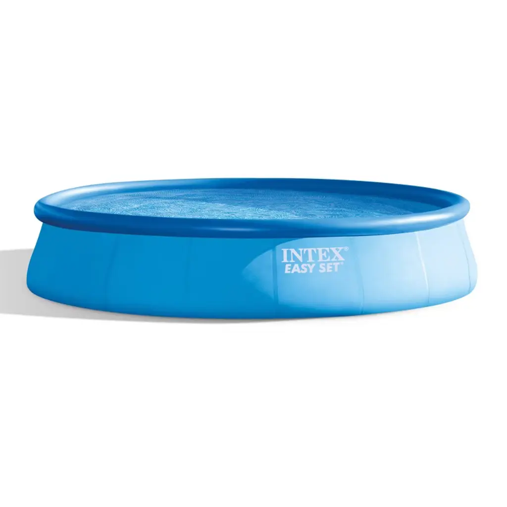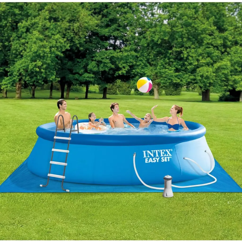 Make a splash all summer long with the Intex Easy Set, one of the most easy to assemble pools on the market. This pool will make your backyard the place to be all summer as your family can relax and play. Connect the Krystal Clear Cartridge Filter pump to enjoy clean, refreshing water. Equipped with the Ground Fault Interrupter, which is an added safety feature that shuts off the pump if electrical current is exposed to water. Ready for water in 15 minutes, - simply spread out on level ground, inflate the top ring, fill the pool with water, and enjoy the fun! Water capacity: (80%) 3,736 gallons. Includes: Krystal Clear Cartridge Filter pump, 1,000 gph (110-120V). Ladder. Ground Cloth. Debris Cover. SUPER-TOUGH laminated PVC sidewalls. Convenient drain plug that connects to a garden hose so water can be drained away from pool or house area.