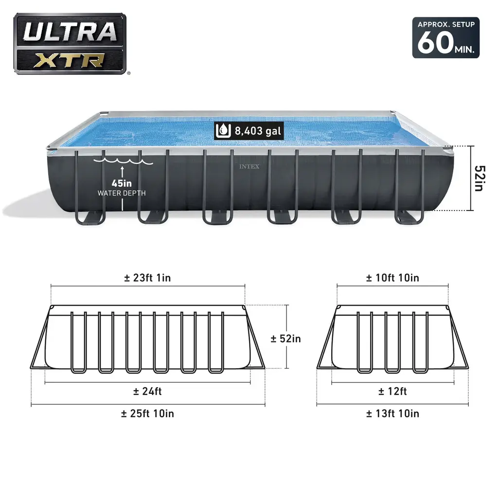 Intex 26367eh 24' X 12' X 52" Ultra Xtr Frame Swimming Pool W/ Robot Vacuum - Grey