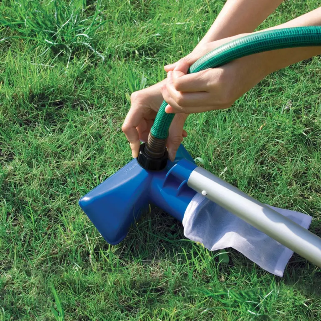 The Intex 12-foot by 12-foot Prism Frame Pool and Pool Maintenance Kit is perfect for hosting all those backyard pool parties this summer. The upscale seafoam blue pool comes with a 530 gallons per hour cartridge filter pump that is able to produce 110 to 120 volts. The added instructional DVD helps you easily set up the pool and get it ready for water in just 45 minutes. With a capacity of 1,718 gallons, you'll have plenty of space for backyard fun. Prism frame pools are enhanced with strong, powder-coated steel tubing. That makes them durable and easy to assemble. The liner is constructed with puncture-resistant, 3-ply material to ensure that you'll have years of backyard fun. The Intex Pool Maintenance Kit helps to keep your pool water looking crystal clear with the cleaning essentials. Attach the vacuum to the 94 inch telescoping pole. Simply connect your garden hose and suck debris into the reusable debris bag. Then attach the surface skimmer to the pole and collect leaves and other floating particles. Easily keep your pool clean in a flash with pool maintenance cleaning kit this summer. This is designed for 16 foot and smaller above ground swimming pools with lower side walls. The tool kit includes 94 inch telescoping aluminum shaft for interchangeable skim net head and vacuum heads to get pool clean in a flash. This 2-in-1 pool cleaner takes up less space than a skimmer pole and a pool vacuum, freeing up space wherever you store your pool cleaners. Start your summer off with a stylish above ground pool with the Intex Prism Frame Pool and Maintenance Kit.