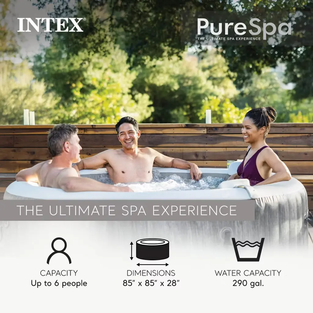 Intex 28441eh Purespa Greywood Deluxe Spa Set, 170 Bubble Jet Round Hot Tub With Energy Efficient Spa Cover, 6 Person Capacity, 85" X 28"