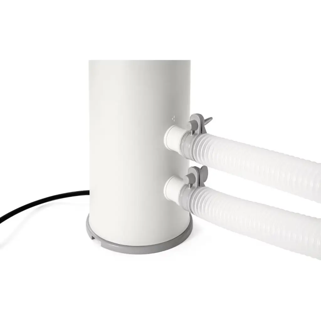 Keep your pool water Krystal Clear and refreshing this summer with the Intex C530 Cartridge Filter Pump with GFCI for Above Ground Swimming Pools (110-120 Volt)! This filter cartridge is quick and easy to clean and or replace. This pump is easy to install, just attach hoses and plug pump in. Includes two 1 1/4in diameter hoses with clamps. One HydroAeration Technology inlet fitting. Convenient air release valve for easy pump priming. Convenient energy-saving timer built into the GFCI. Automatic daily filtration with 2-10 hour cycles. Equipped with 25ft power cord. Specifications: Turnover rate/System flow: 475 GPH. Max pool size/Water capacity: 3,800 gal.