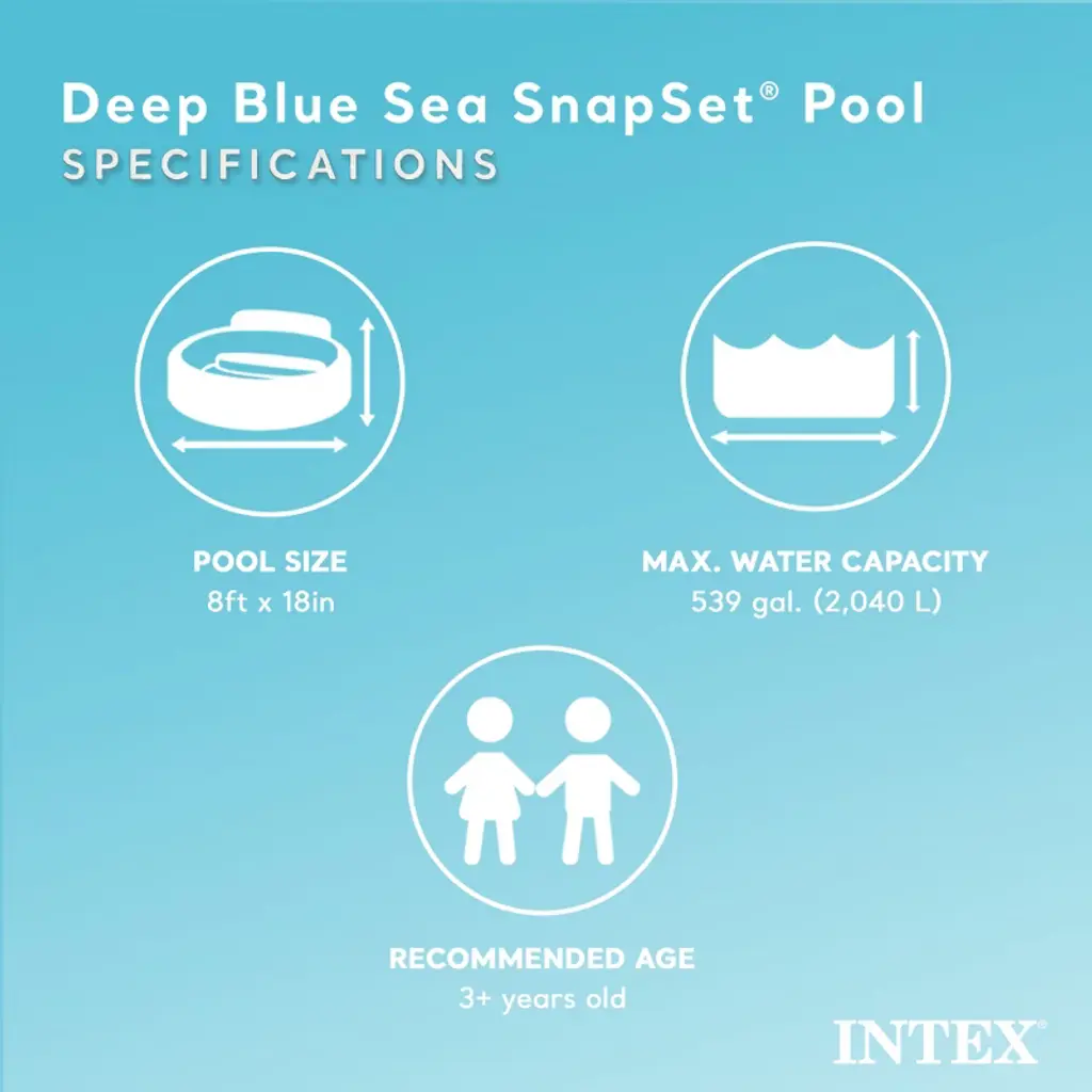 Intex Deep Sea Blue 8 Feet X 18 Inch Snapset Instant Round Above Ground Swimming Kiddie Pool For Kids Ages 3 Years And Up