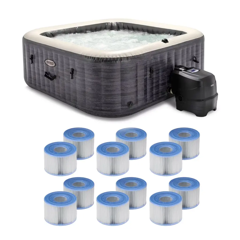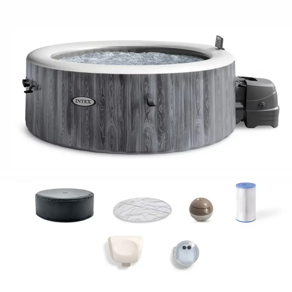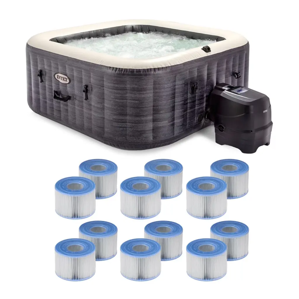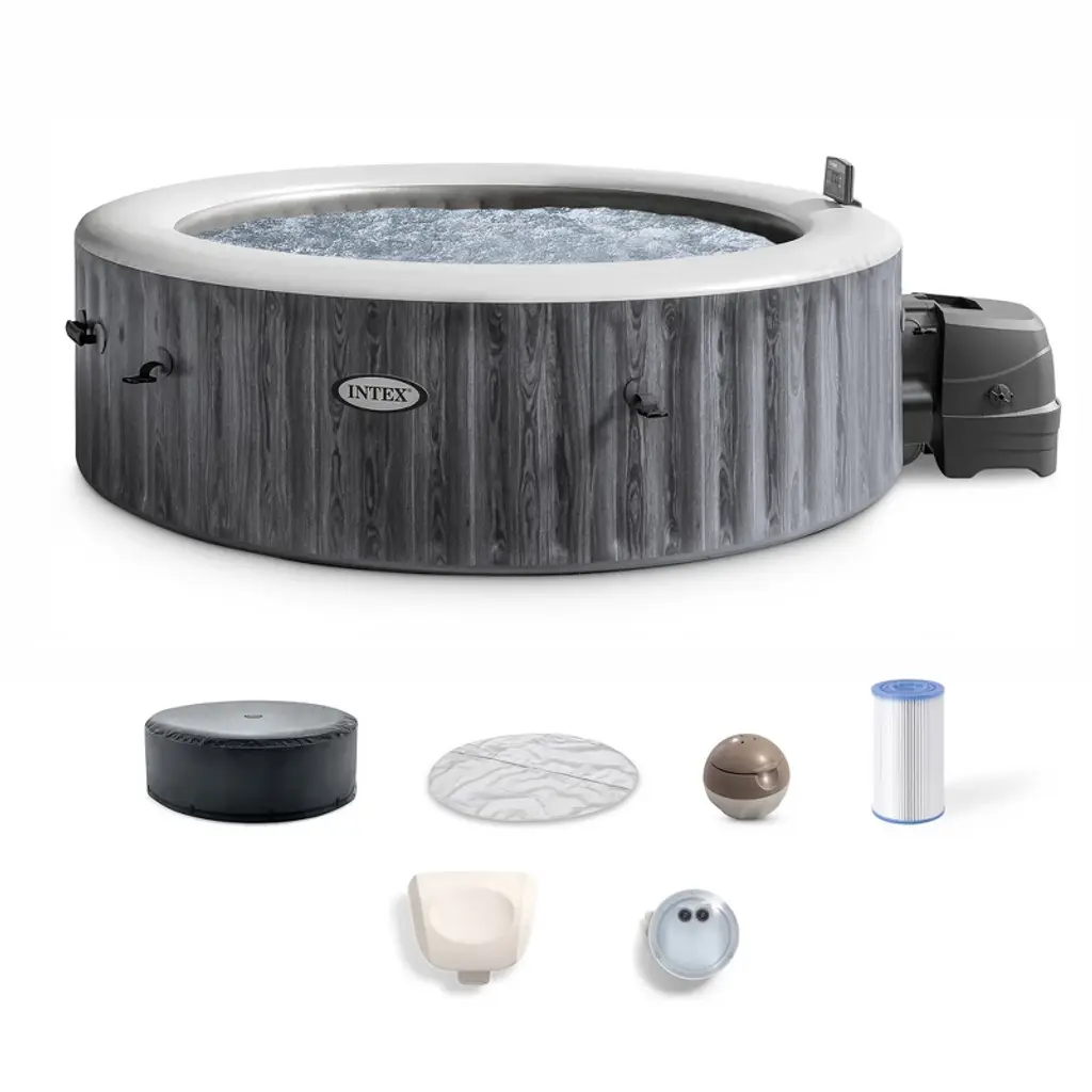 Intex Purespa Plus Greywood Portable Inflatable Hot Tub Bubble Jet Spa With 6 Easy Set Pool Spa Filter Replacement Cartridges