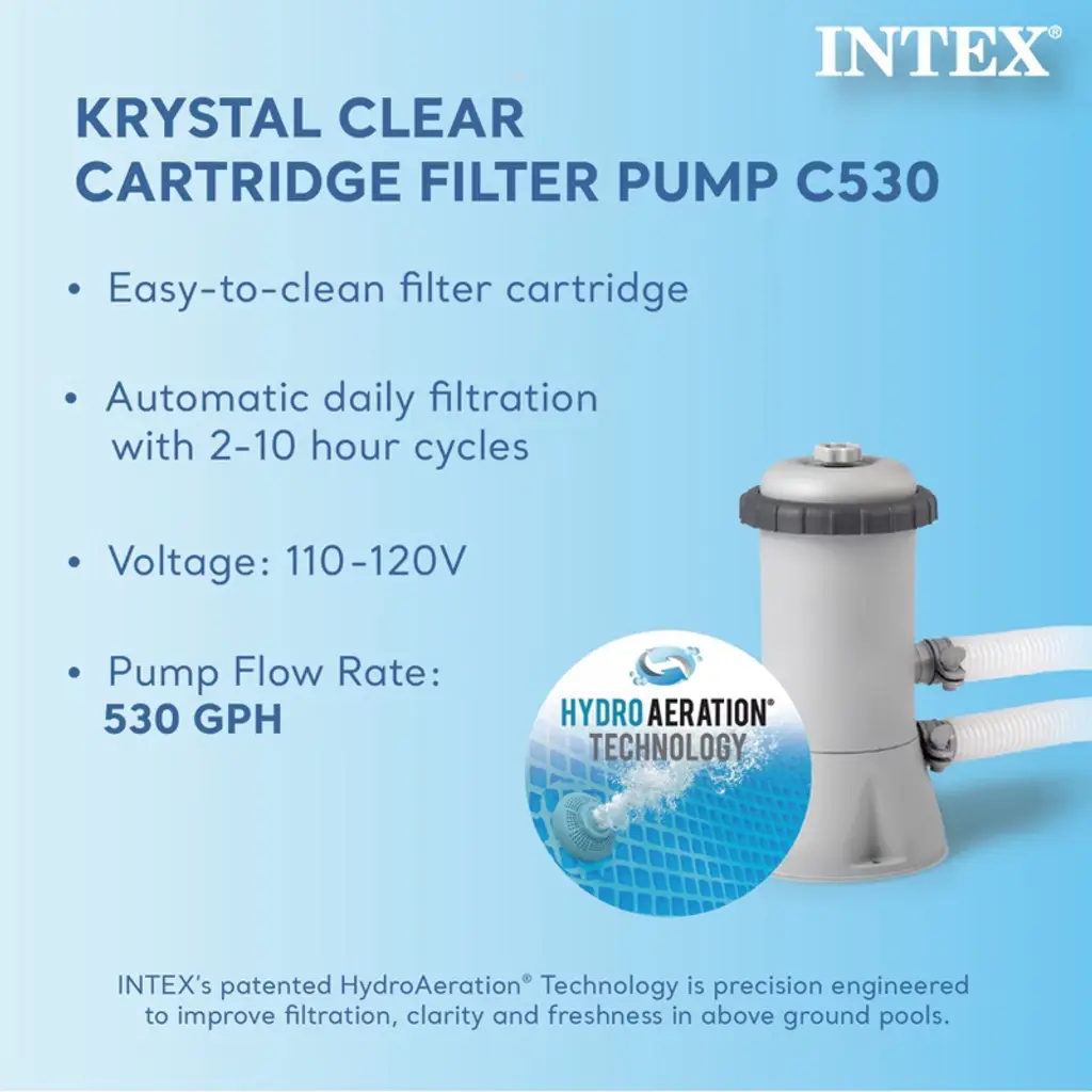 Have a blast all summer long with the INTEX rectangular frame above-ground outdoor swimming pool. This pool measures 14.9 ft x 7.2 ft x 2.75 ft, offering plenty of space for you and your kids to enjoy the outdoors. Use it to splash with friends, swim laps, play pool volleyball or Marco Polo, or relax on a long hot day. The options are endless! This above-ground pool is built for lasting fun. It features sturdy 3-ply PVC sidewalls and a large rectangular frame that resists rust. The simple setup process only takes 30 minutes or less, so your pool will be ready for water in no time. With this convenient design, you can experience a backyard pool without extra work. Simply fill the pool with a garden hose to create your ideal space for splashing and swimming fun. When the season is over, you can use the flow control valve to quickly drain the water and prepare the pool for storage. Splash the summer away with Intex! The included pump filters 530 GPH and incorporates Hydro Aeration technology to improve water filtration and quality. Embrace the joy of summer and enjoy endless fun and convenience with the Intex above-ground swimming pool. Disclaimer: Please review your HOA rules and restrictions before purchasing this product. Not all housing agencies permit private above-ground pools.