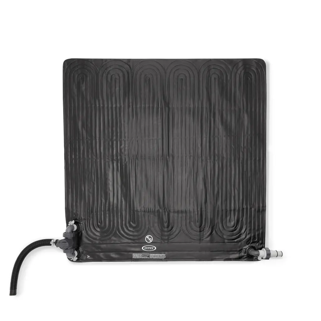 Intex Solar Mat Pool Water Heater (4 Pack) The Intex Solar Heater Mat is an energy-efficient way to capture the sun's rays to heat up your above-ground swimming pool. Designed to work with a variety of Intex filter pumps, this heater warms the water with solar heating technology. Uses the natural power of the sun to warm your pool water! Suitable for above-ground pools up to 8000 gallons. Includes: - 1) 1/4 -inch hose attachment points - 2) adaptors B for 1 1/2-inch (38mm) hose connection - Bypass valve Intex Solar Mat Pool Water Heater (4 Pack) Uses solar technology to increase temperature of the pool water by approx. 5 to 9 degrees depending on weather Simple hook up and you're ready to take the heat Compatible with filter pump up to 1/2 hp or pump flow rate 2500 GPH Suitable for above ground pools up to 8000-gallons Includes: 1) 0.25 -inch hose attachment points 2 adaptors B for 1.4-inch (38mm) hose connection Bypass valve Easy and economical to use Material: Vinyl Dimensions (L x W): 47.25 x 47.25 inches Weight: 6 pounds Manufacturer warranty: 30-day warranty Quantity: 4