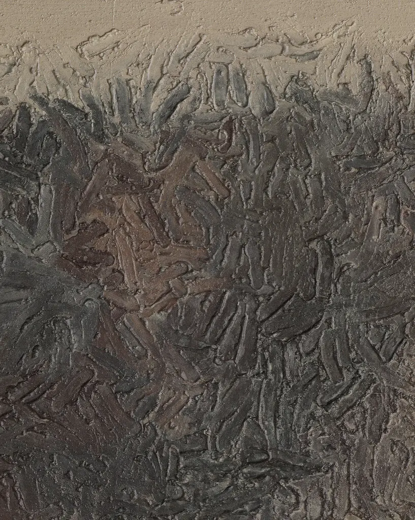 Tyler Guinn's Into The New No. 2 is a striking addition to any space. The bold, textural composition is presented in a rustic walnut floater frame, bringing a touch of warmth and a sense of refinement to the abstract piece.