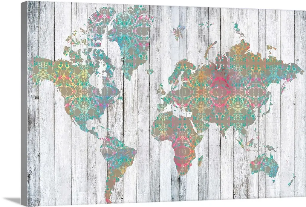 Intriguing Blue Patterned Map On Rustic Design11x14