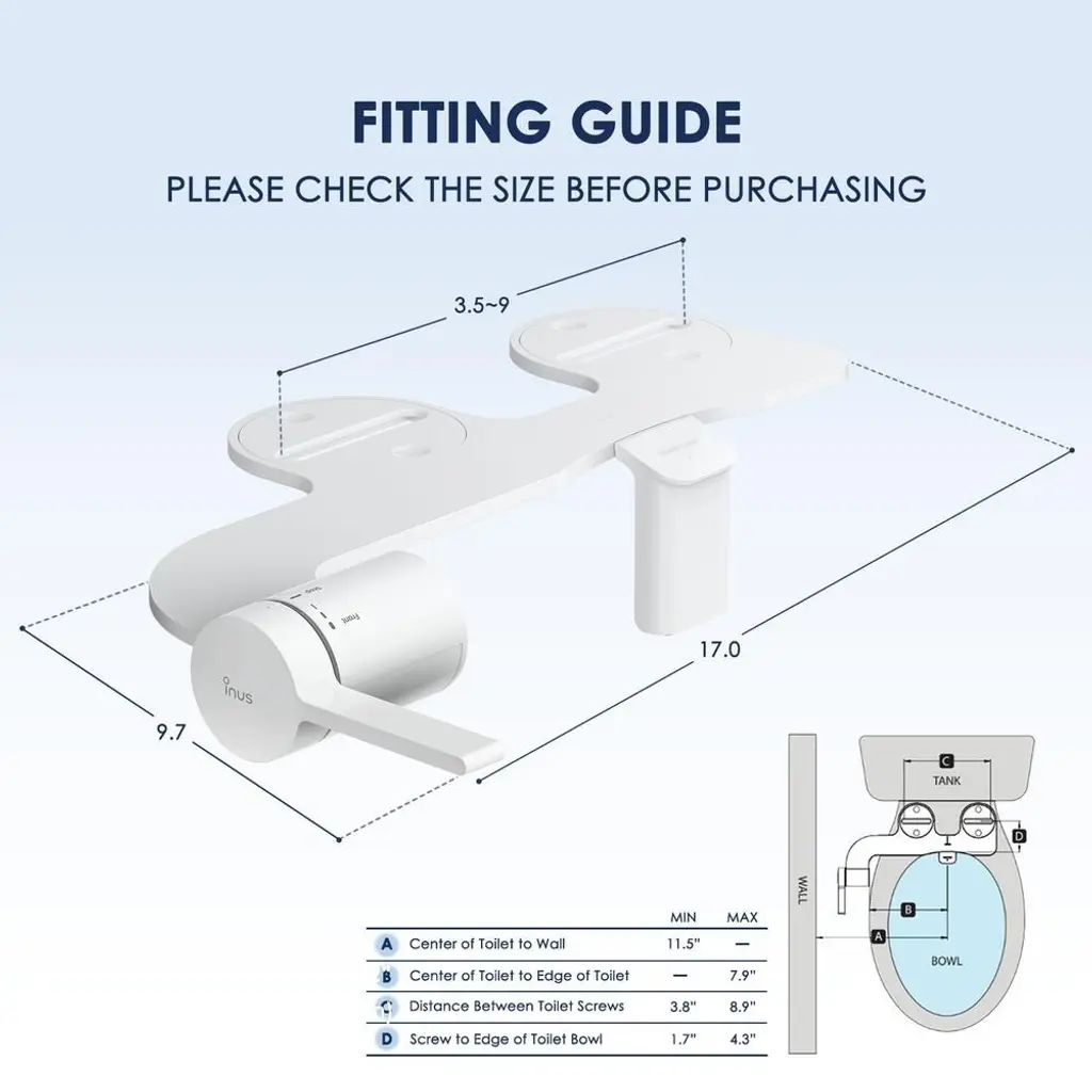 Easy Installation: Enjoy a hassle-free upgrade designed for quick and straightforward installation, eliminating concerns about complicated setups. Dual Nozzle: Indulge in a comprehensive cleansing experience with the M3 bidet's dual-nozzle system, catering to both posterior and feminine wash options for versatile functionality. Nozzle Guard: Prioritize cleanliness and maintenance with the built-in nozzle guard, ensuring a hygienic experience and alleviating concerns about upkeep. Ergonomic Handle: Experience optimal comfort and control with the thoughtfully designed ergonomic handle. Customizable Nozzle Position: Tailor your cleansing experience to your preferences with the adjustable nozzle position, providing a personalized touch for maximum comfort. Premium Design: Transform your bathroom with the modern and sleek design, seamlessly combining functionality with a premium aesthetic. Universal Fit: Upgrade with confidence with a universal fit, ensuring compatibility with most standard toilets. Enhanced Personal Hygiene: Elevate your daily hygiene routine with a thorough and refreshing clean that goes beyond basic cleansing.
