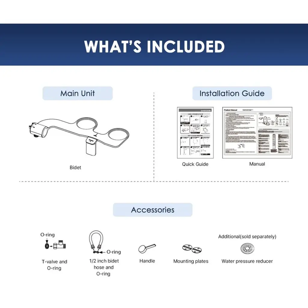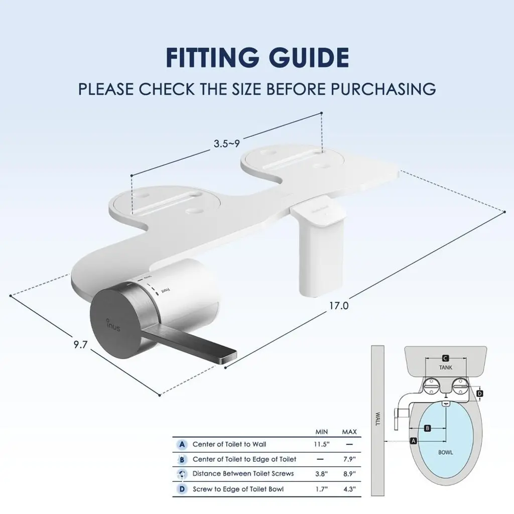 Easy Installation: Enjoy a hassle-free upgrade designed for quick and straightforward installation, eliminating concerns about complicated setups. Dual Nozzle: Indulge in a comprehensive cleansing experience with the M3 bidet's dual-nozzle system, catering to both posterior and feminine wash options for versatile functionality. Nozzle Guard: Prioritize cleanliness and maintenance with the built-in nozzle guard, ensuring a hygienic experience and alleviating concerns about upkeep. Ergonomic Handle: Experience optimal comfort and control with the thoughtfully designed ergonomic handle. Customizable Nozzle Position: Tailor your cleansing experience to your preferences with the adjustable nozzle position, providing a personalized touch for maximum comfort. Premium Design: Transform your bathroom with the modern and sleek design, seamlessly combining functionality with a premium aesthetic. Universal Fit: Upgrade with confidence with a universal fit, ensuring compatibility with most standard toilets. Enhanced Personal Hygiene: Elevate your daily hygiene routine with a thorough and refreshing clean that goes beyond basic cleansing. Environmentally Friendly: Make an eco-conscious choice, designed to reduce environmental impact through toilet paper consumption.