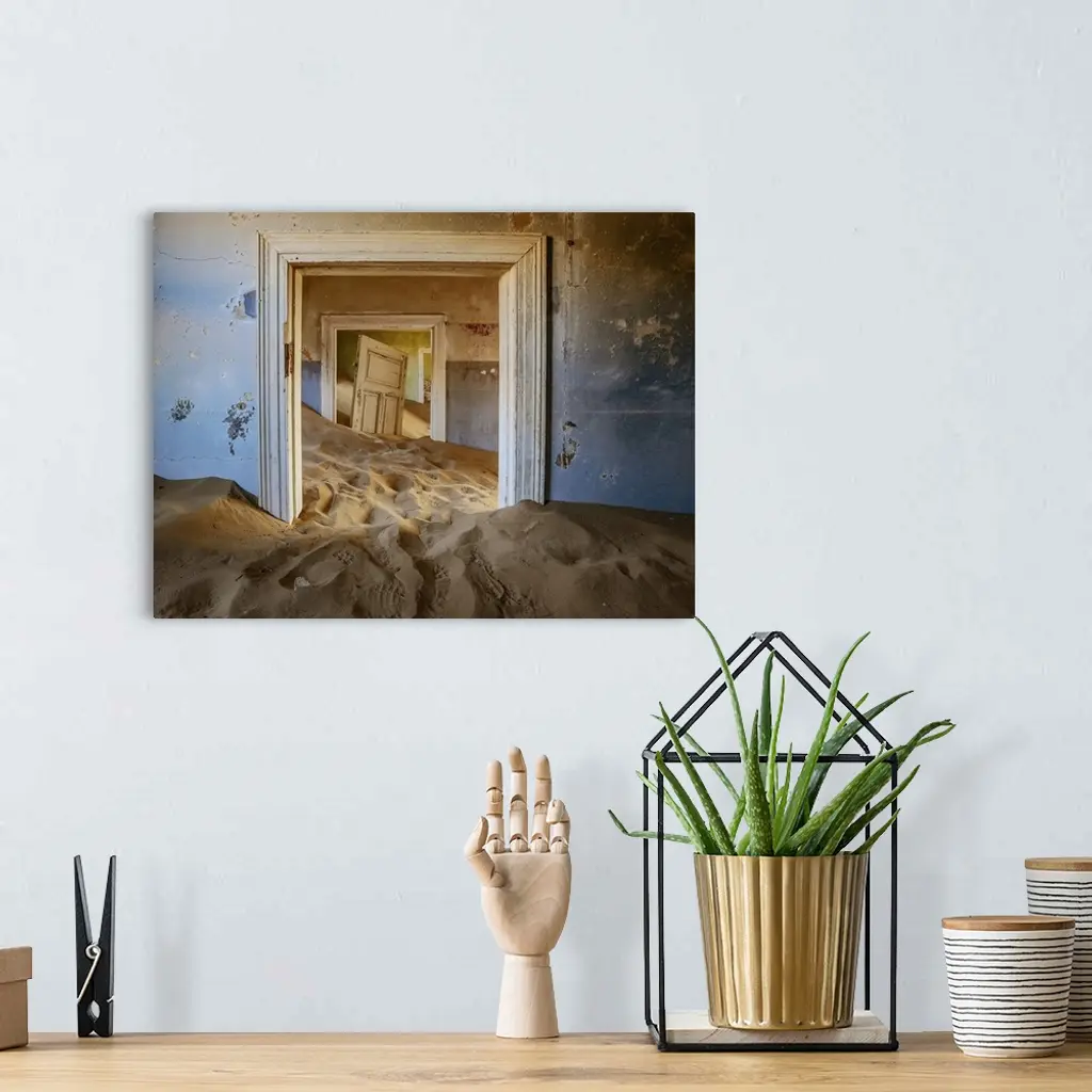 Sand has invaded and taken over these rooms in Kolmanskoppe, Namibia.