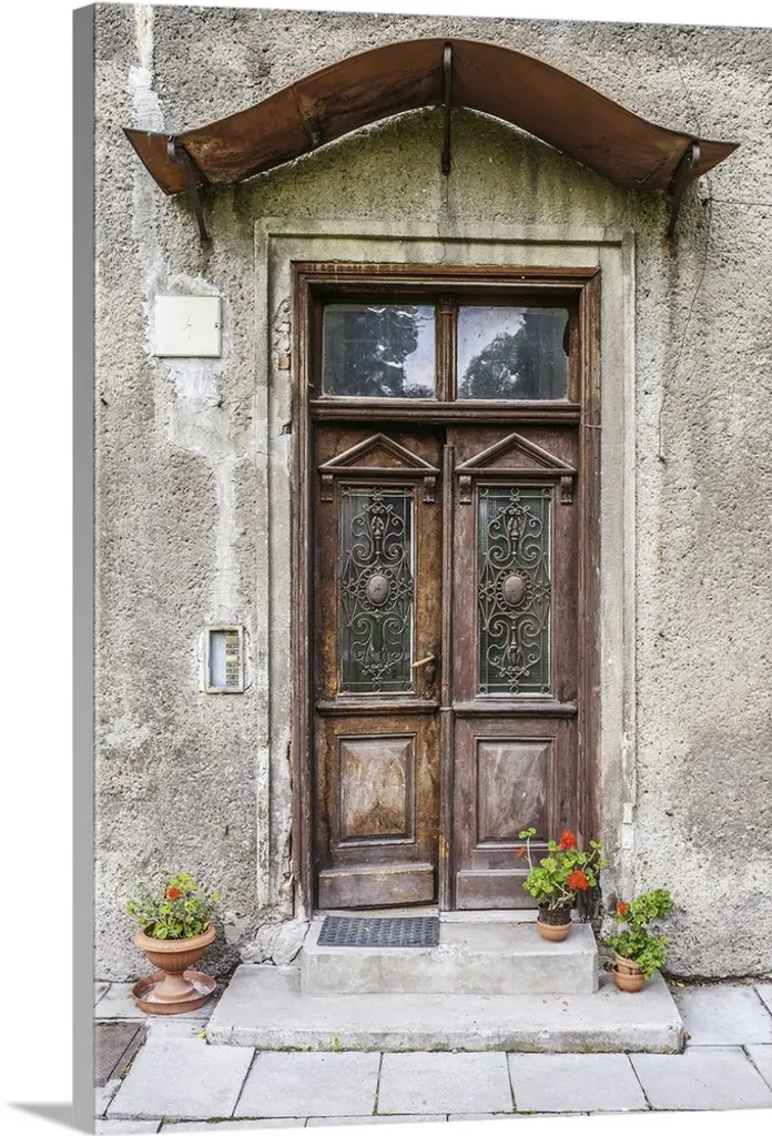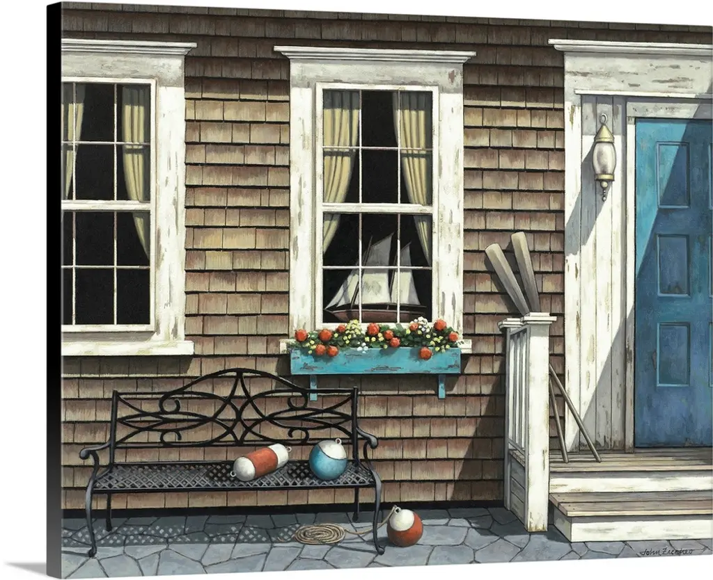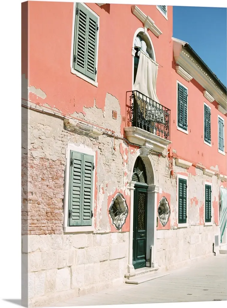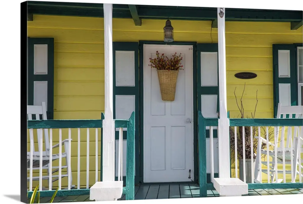 Staircase leading up to the entrance of a red house.