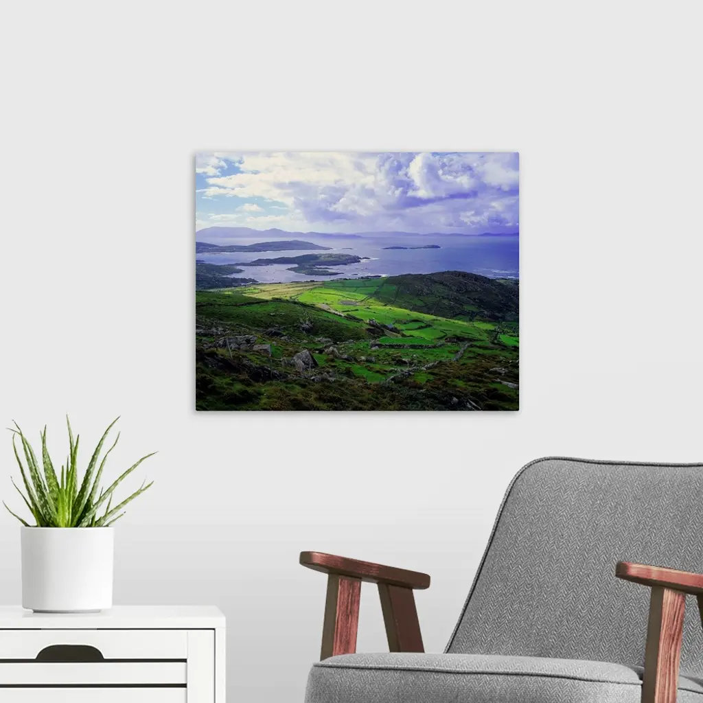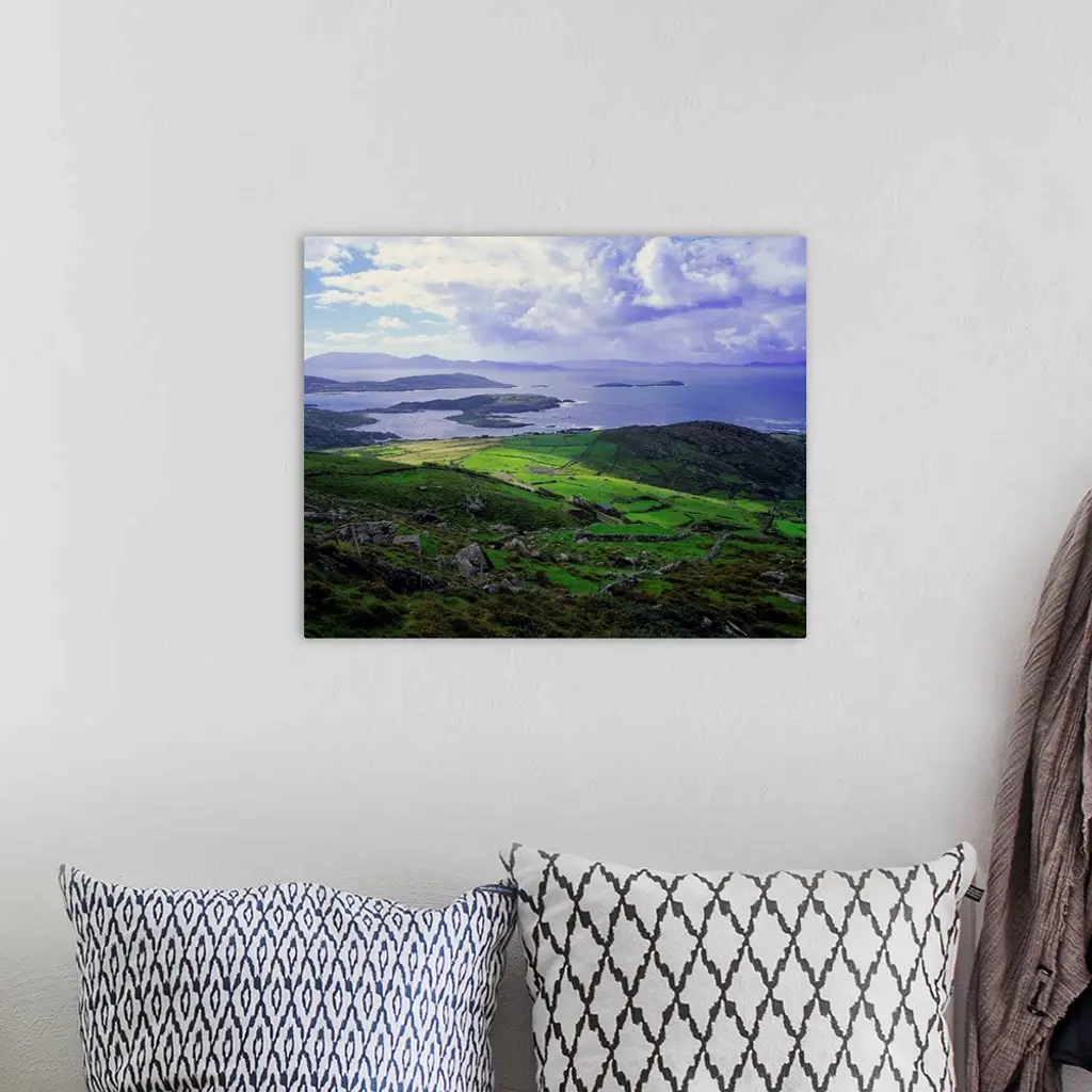 Ireland, County Kerry, Ring of Kerry, view from Coomakesta pass wall art for home and office decor. Discover canvas art prints, photos, mural, big canvas art and framed wall art in GreatBigCanvas.com's varied collections.