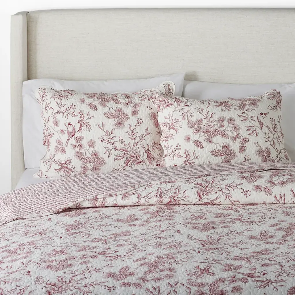 Add a touch of timeless elegance to your bedroom with this toile-patterned quilt set. Crafted from 100% cotton, this three-piece ensemble includes a quilt and two matching pillow shams. The reversible design features a classic red and white color palette, giving you the flexibility to switch up your style whenever you please. Pre-washed and pre-shrunk, this quilt set offers a cozy and inviting feel for your restful nights. Simply line dry and iron as needed to keep it looking fresh. Ideal for residential use, this lovely set is sure to become a cherished addition to your home.
