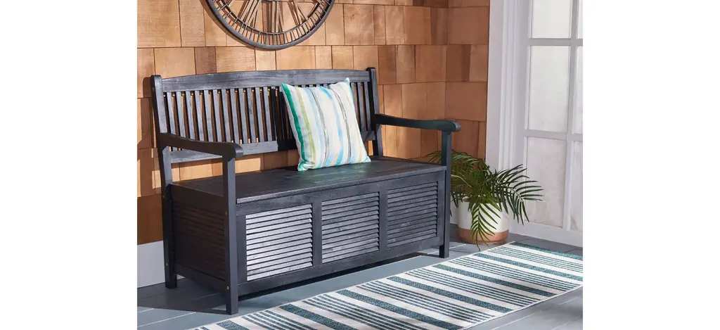 Inventive and beautiful, the Irina outdoor storage bench solves the age old dilemma of where to store pool gear or outdoor cushions, while providing seating for two. Crafted of easy care acacia wood in white, this piece promises style and function.