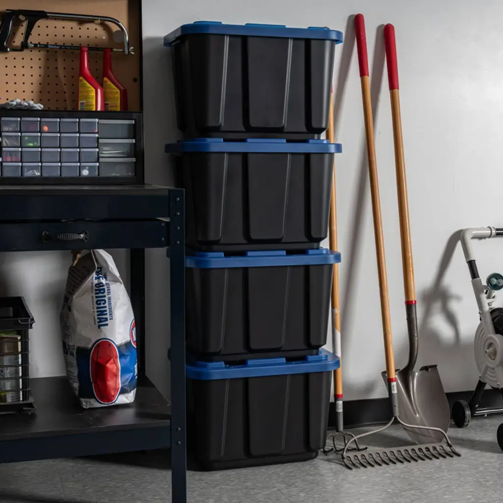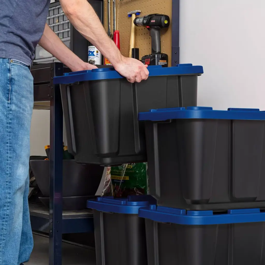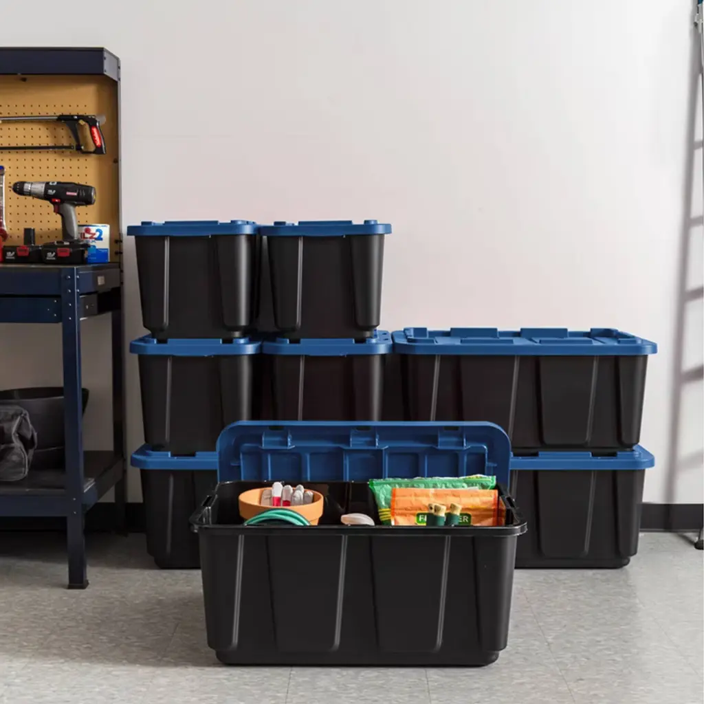 Tackle your toughest garage storage needs with these heavy-duty plastic storage bins with lids. Built for strength and durability, these rugged storage containers are perfect for organizing tools, hardware, and bulky equipment in garages, workshops, or utility rooms. Whether you need tool storage or a solution for seasonal gear, these stackable totes for storage deliver long-lasting performance in demanding environments. Each storage bin is made from durable materials that resist warping, cracking, or breaking under pressure. The secure latching lids keep contents protected from dust, dirt, and moisture, making them ideal for long-term garage storage or transporting heavy items. These plastic storage bins with lids are designed to handle everything from power tools and cords to sports equipment and outdoor gear. These versatile storage containers feature reinforced handles for easy lifting and moving, even when full. Their stackable design helps maximize floor and shelf space, making it easier to organize crowded garages, sheds, or basements. Use them as garage bins, tool storage boxes, or general-purpose totes—these bins are up for any job. Whether you're clearing out the garage, organizing a tool bench, or storing supplies in a workshop, these storage bins with lids provide a practical, durable solution. Great for both home and professional use, these storage totes keep your items secure, organized, and ready when you need them. From heavy-duty garage storage to simple household organization, these boxes are a smart choice. With reliable construction and a versatile design, these bins, totes, and storage containers simplify your space and stand up to daily use.