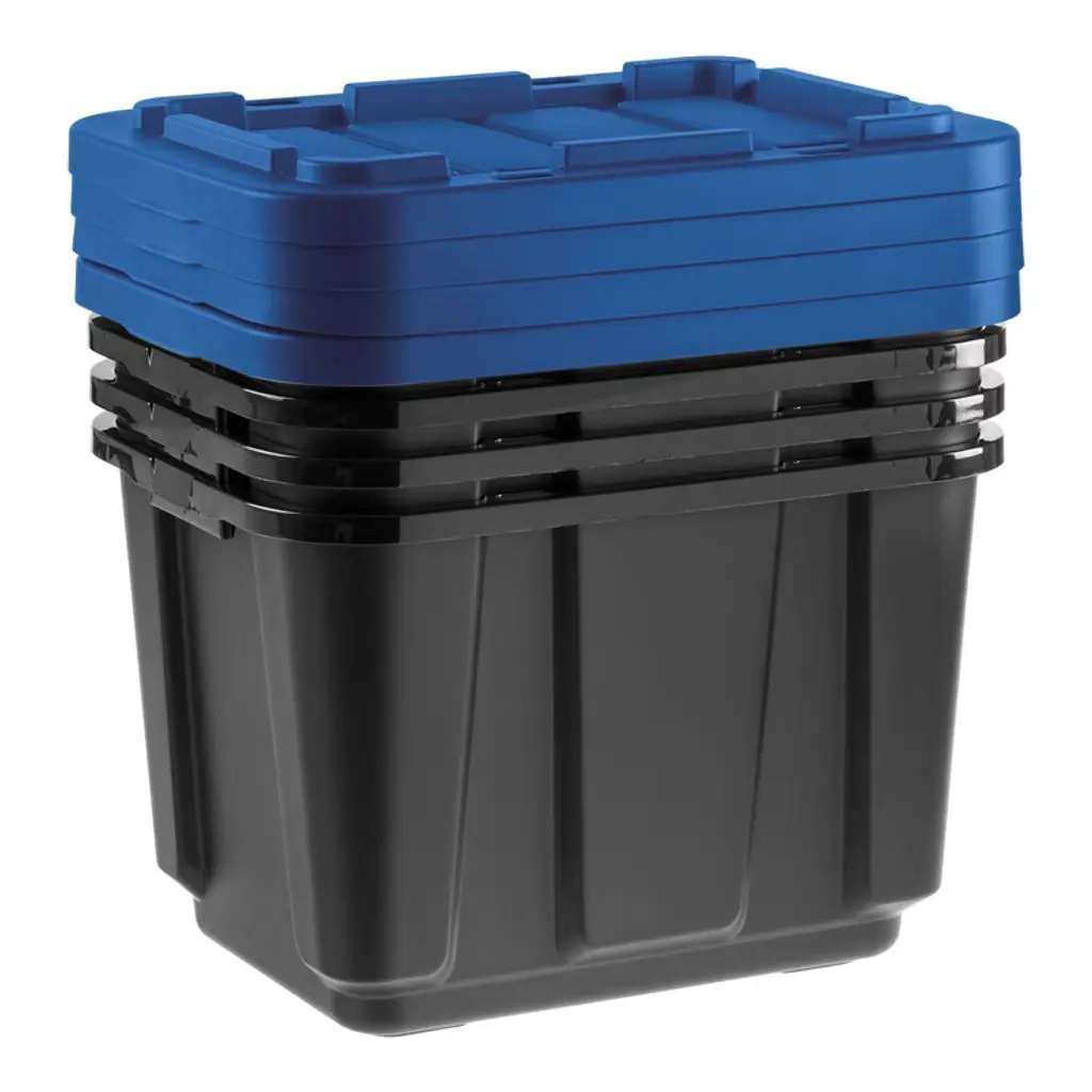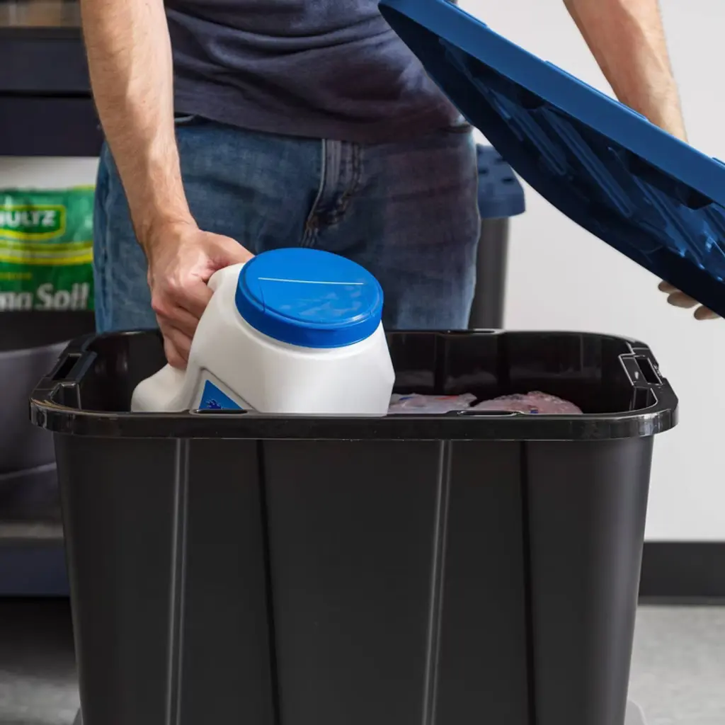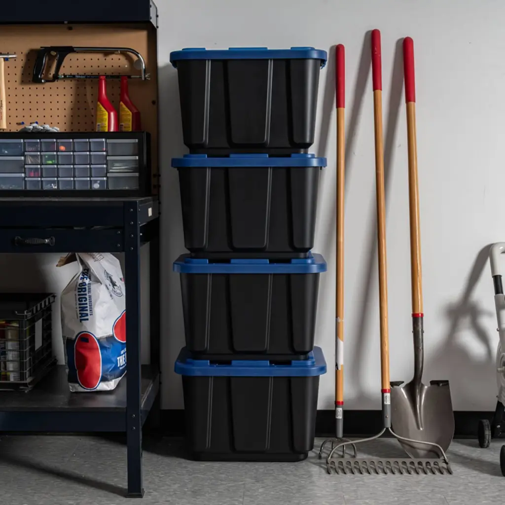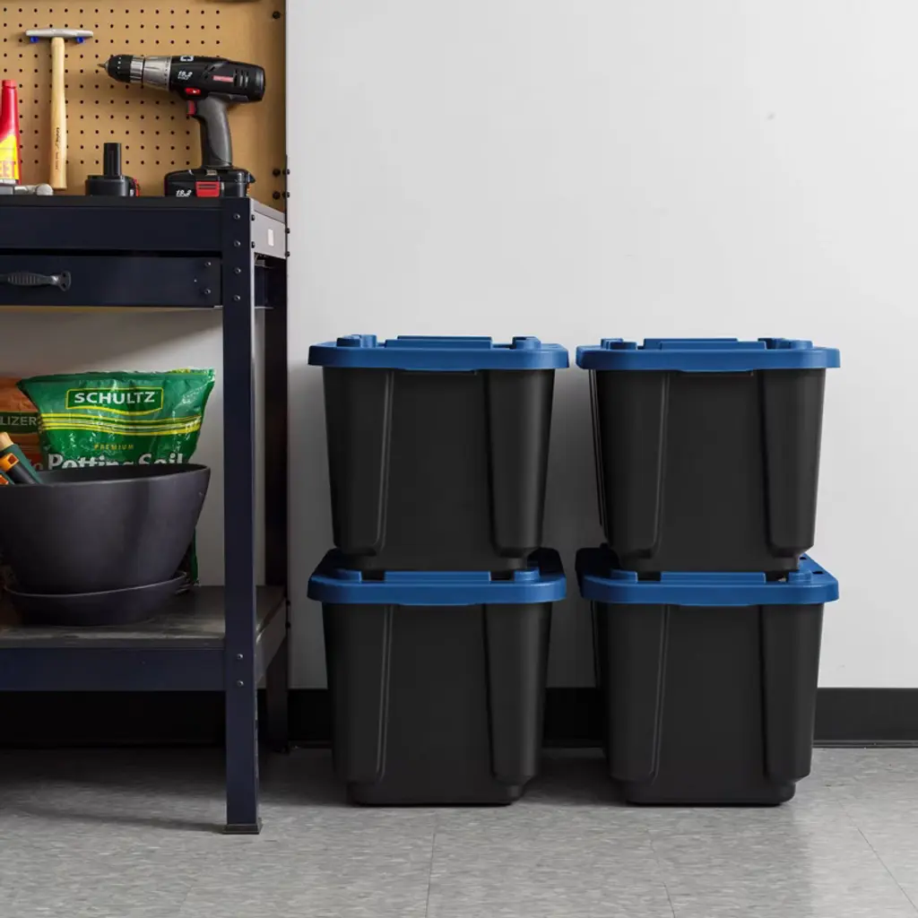 Tackle your toughest garage storage needs with these heavy-duty plastic storage bins with lids. Built for strength and durability, these rugged storage containers are perfect for organizing tools, hardware, and bulky equipment in garages, workshops, or utility rooms. Whether you need tool storage or a solution for seasonal gear, these stackable totes for storage deliver long-lasting performance in demanding environments. Each storage bin is made from durable materials that resist warping, cracking, or breaking under pressure. The secure latching lids keep contents protected from dust, dirt, and moisture, making them ideal for long-term garage storage or transporting heavy items. These plastic storage bins with lids are designed to handle everything from power tools and cords to sports equipment and outdoor gear. These versatile storage containers feature reinforced handles for easy lifting and moving, even when full. Their stackable design helps maximize floor and shelf space, making it easier to organize crowded garages, sheds, or basements. Use them as garage bins, tool storage boxes, or general-purpose totes—these bins are up for any job. Whether you're clearing out the garage, organizing a tool bench, or storing supplies in a workshop, these storage bins with lids provide a practical, durable solution. Great for both home and professional use, these storage totes keep your items secure, organized, and ready when you need them. From heavy-duty garage storage to simple household organization, these boxes are a smart choice. With reliable construction and a versatile design, these bins, totes, and storage containers simplify your space and stand up to daily use.