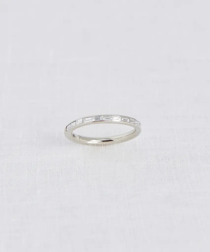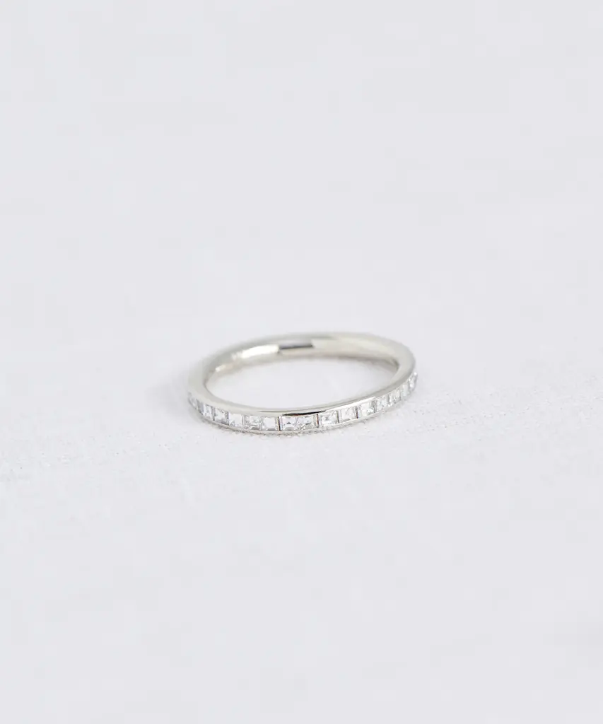 Iris Eternity Band White Gold Nothing completes an outfit like an heirloom-quality piece of jewelry. Inspired by vintage pieces in Jenni’s own collection, this edited assortment of fine jewelry aims to add an air of understated investment to your everyday. Made with an understated sensibility and intentional aesthetic, each piece is designed to serve as a thoughtful addition to your daily uniform—one that you will treasure for seasons to come. Please note, there is a 7-10 day lead time for this ring. 14k solid gold band with square diamonds. Made in Los Angeles. Carat weight: 0.92ct. Stamped with the Jenni Kayne logo inside, plus hand-polished and finished for added luxury. Features certified no conflict diamonds from Canada, South Africa, Botswana, and Namibia and recycled gold. Jenni Kayne Jewelry is not eligible for promotions.