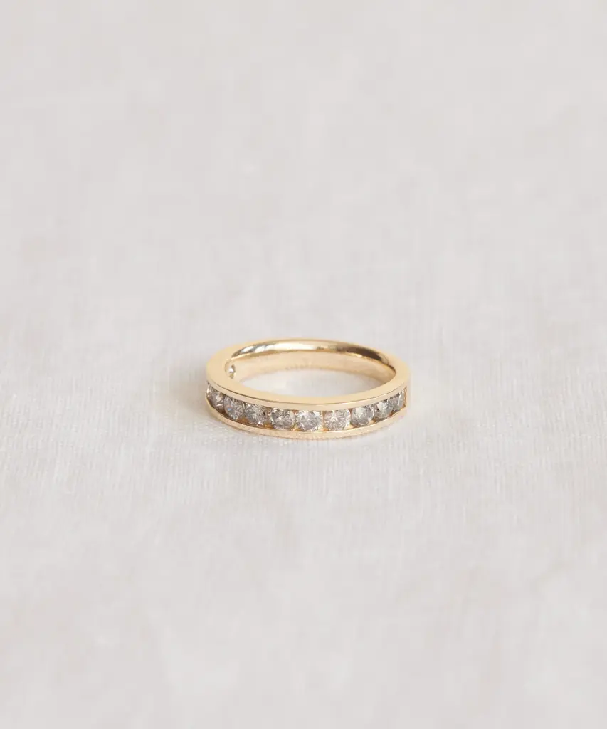 Iris Eternity Band White Gold Nothing completes an outfit like an heirloom-quality piece of jewelry. Inspired by vintage pieces in Jenni’s own collection, this edited assortment of fine jewelry aims to add an air of understated investment to your everyday. Made with an understated sensibility and intentional aesthetic, each piece is designed to serve as a thoughtful addition to your daily uniform—one that you will treasure for seasons to come. Please note, there is a 7-10 day lead time for this ring. 14k solid gold band with square diamonds. Made in Los Angeles. Carat weight: 0.92ct. Stamped with the Jenni Kayne logo inside, plus hand-polished and finished for added luxury. Features certified no conflict diamonds from Canada, South Africa, Botswana, and Namibia and recycled gold. Jenni Kayne Jewelry is not eligible for promotions.