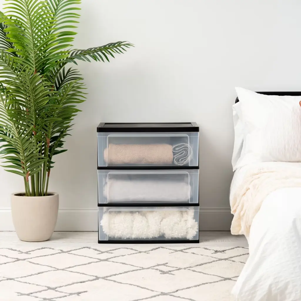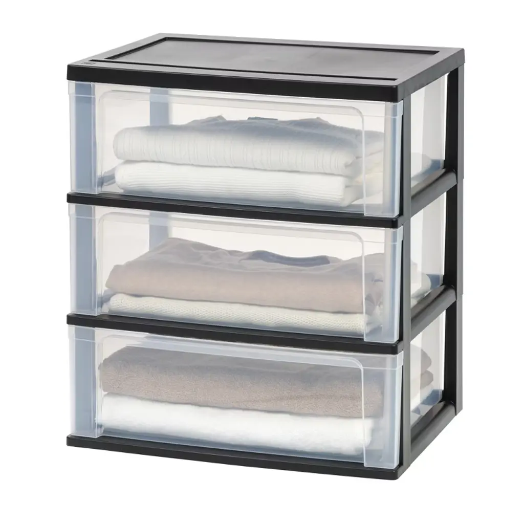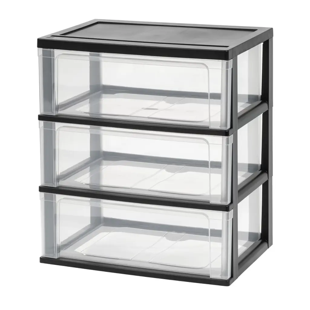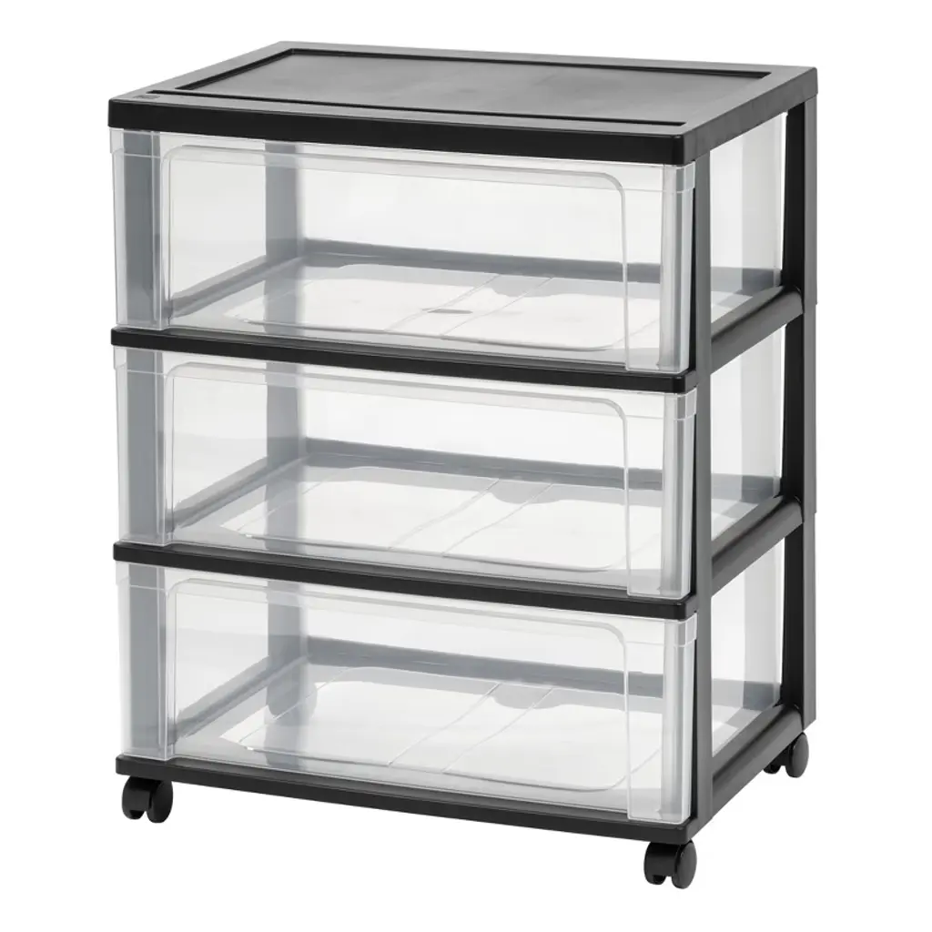 Iris Usa 3 Drawer Wide Plastic Storage Drawer Cart With Caster Wheels, Black/clear