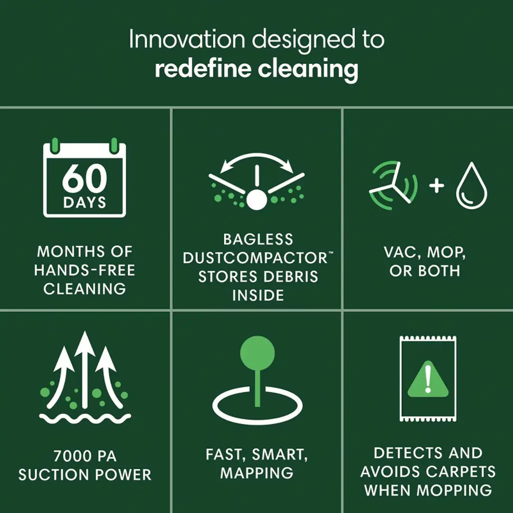 Only from Roomba, the Roomba 205 DustCompactor Vac Robot is fully-loaded with innovation that keeps cleaning simple. The perfect vacuuming robot for homes where space is at a premium, this sleek, action-packed robot has all the benefits of a separate self-emptying dock built right into the robot. With the industry's first-ever mechanical compactor, debris is lifted into the robot and continuously compacted for up to 2 months at a time so you can keep your hands out of messes. The 3-stage Vacuuming System combines 70X more* power-lifting suction, a rubber brush that grabs all kinds of debris from crumbs in the kitchen to sandy footprints in the entry, and a corner brush that reaches into tight spaces and pulls up dust-bunnies wherever they gather. Feel confident the clean will be completed as the battery lasts for over three hours. But when it gets low, your robot automatically heads for a recharging and then returns to finish the task where it left off. Continuous, hassle-free cleaning is made possible by ClearView LiDAR hidden inside the robot. This high-performance navigation system quickly maps your home, smoothly steers around obstacles, and maximizes floor-cleaning coverage wall-to-wall. To customize your clean, simply tap the Roomba Home App to opt for multiple vacuum passes in high-traffic areas, choose the level of suction, or even schedule a night cleaning.This Roomba® raises the bar with first-of-its-kind onboard compacting. Roomba blends seamlessly into your home decor with sleek, beautiful finishes, leaving behind a brilliant clean. *As compared to Roomba® 600 series robots