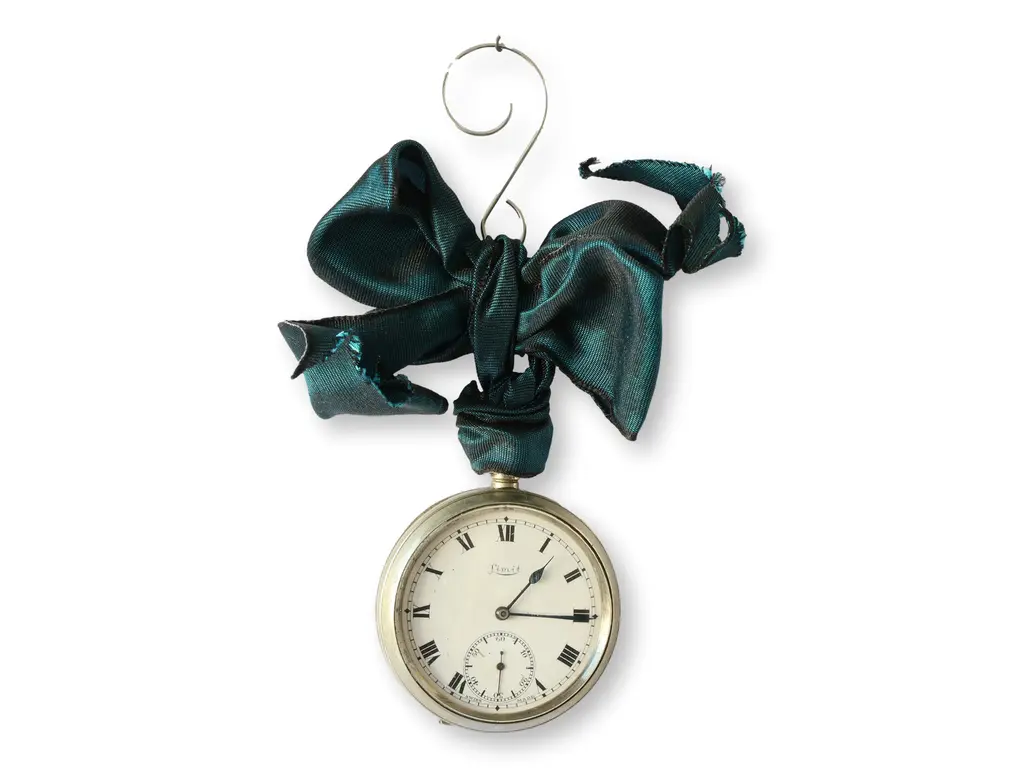 Antique round clock with ribbon. Zentique combines unique designs with high-end materials to bring you the very best home decor in the business. When you order a product engineered and manufactured by Zentique, you''re guaranteed to get a product that is built to last for years and years to come. This product will come in ship-safe packaging materials and will be sure to impress!DimensionsLength: 4. 75 in. Width: 2 in. Height: 5. 25 in. Some assembly required: No