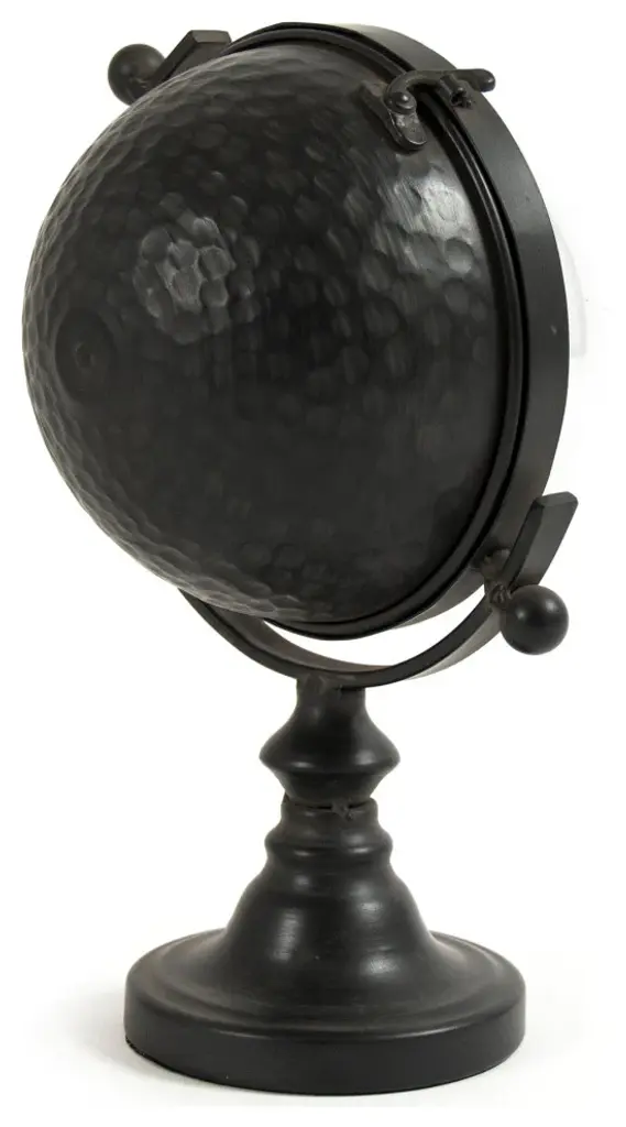 Globe shaped table clock with white numbers and constellations design on distressed black finish. Zentique combines unique designs with high-end materials to bring you the very best home decor in the business. When you order a product engineered and manufactured by Zentique, you''re guaranteed to get a product that is built to last for years and years to come. This product will come in ship-safe packaging materials and will be sure to impress!DimensionsLength: 7. 25 in. Width: 6. 75 in. Height: 11. 75 in. Some assembly required: No