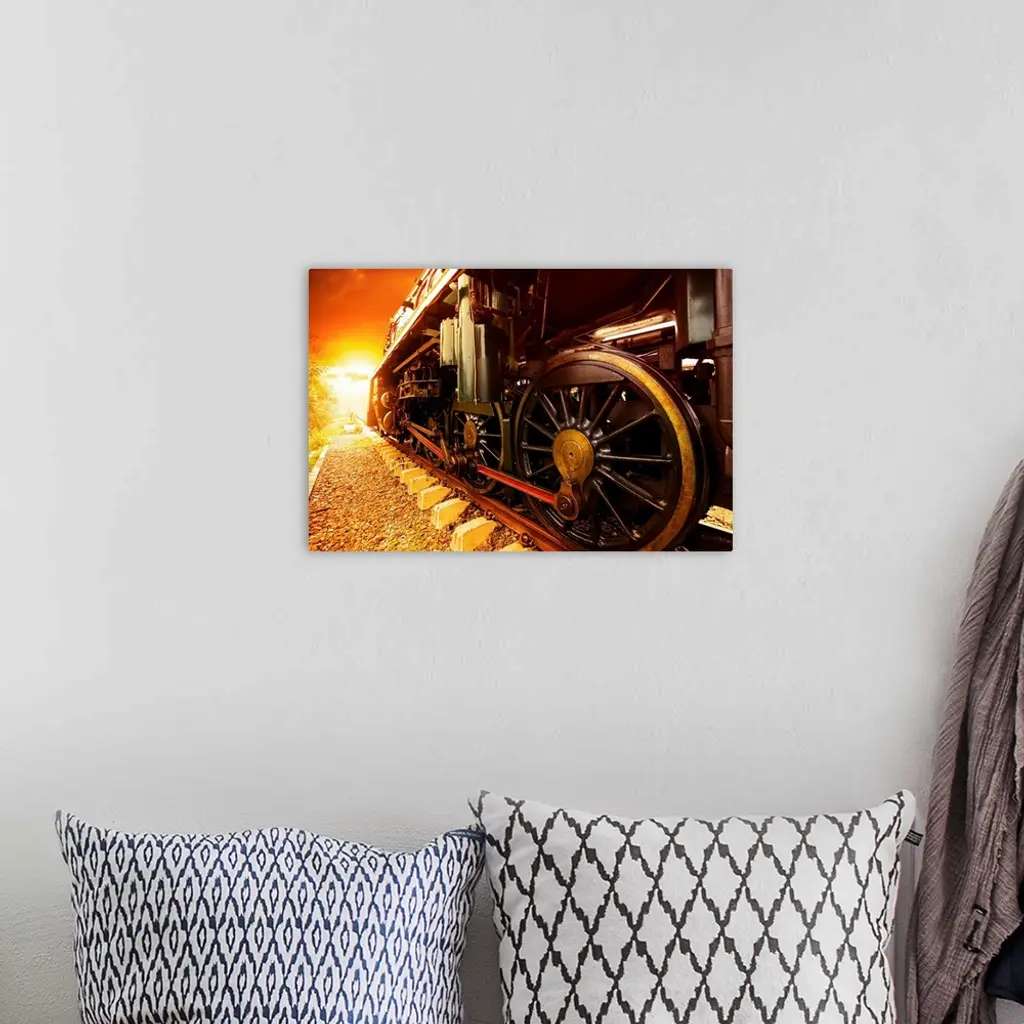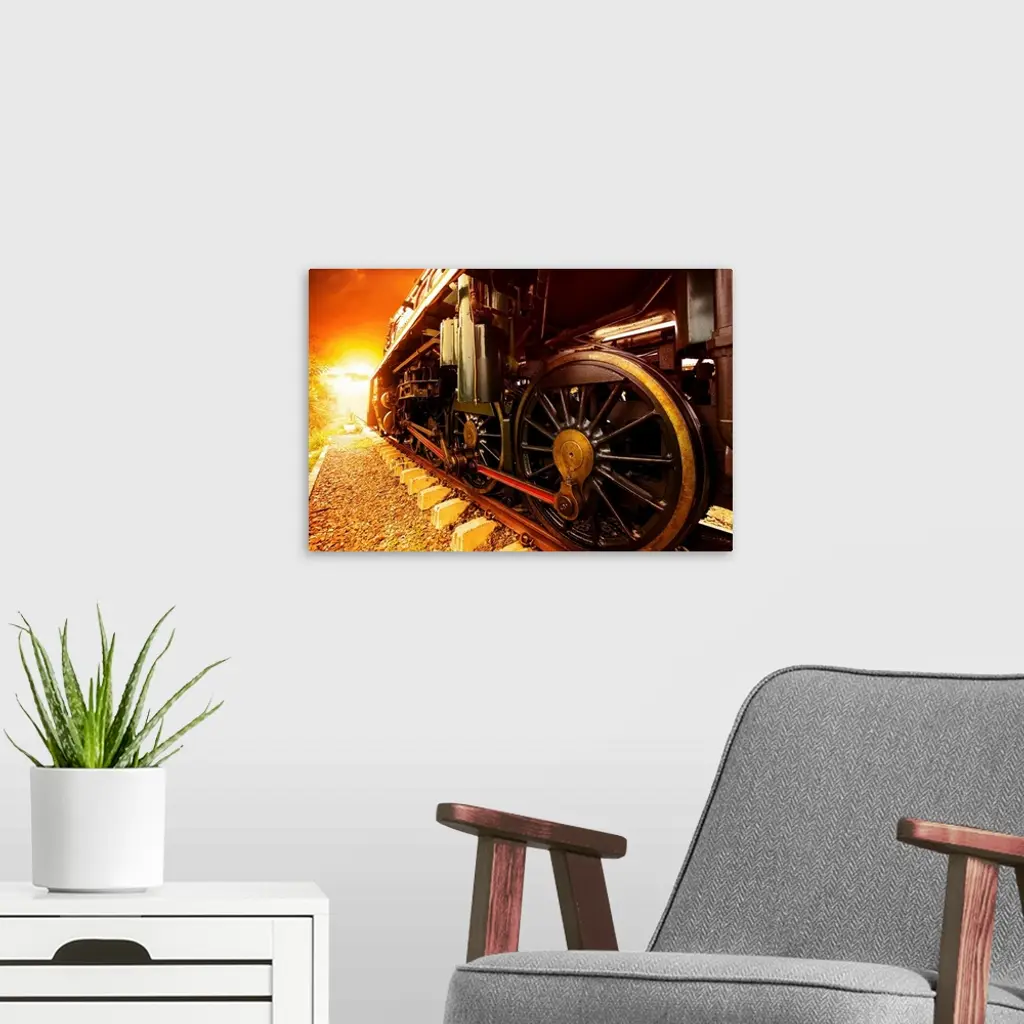 Iron Wheels Of Stream Engine Locomotive Train On Railways