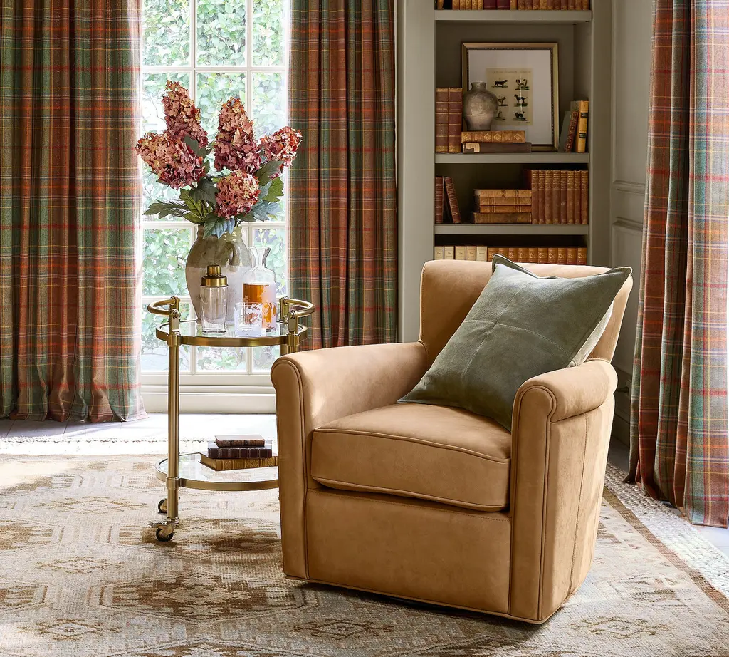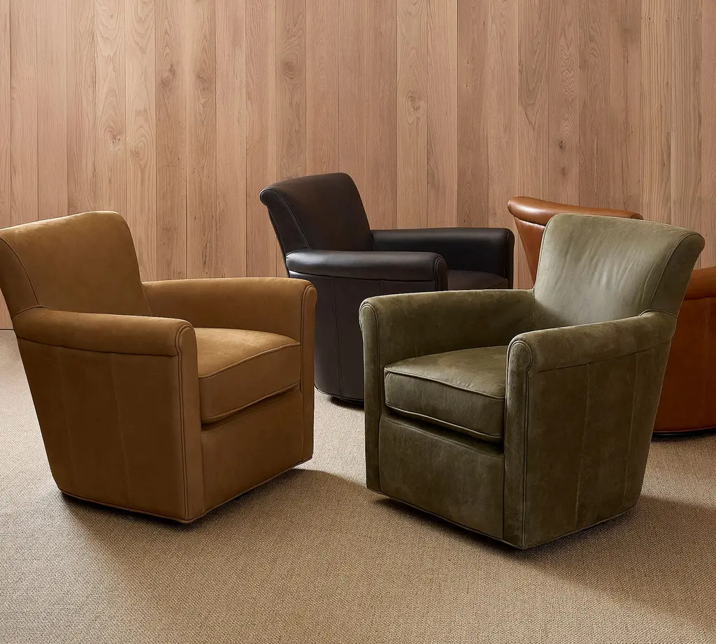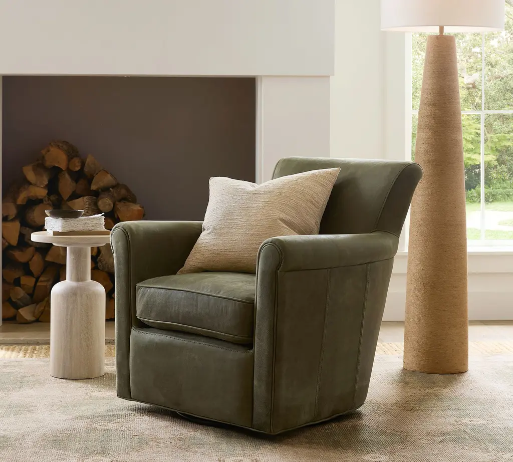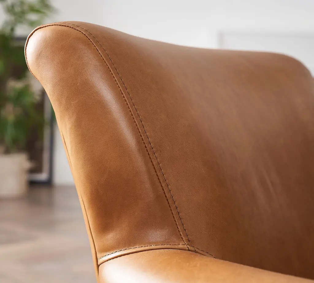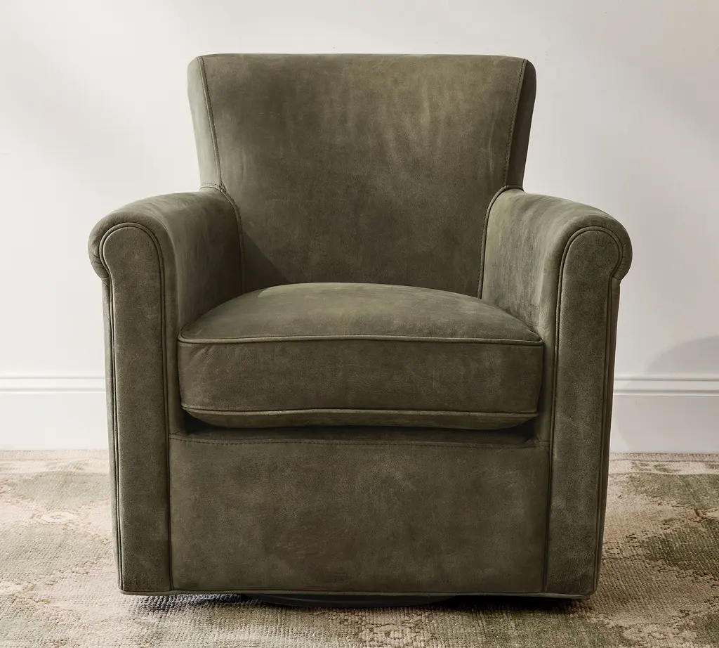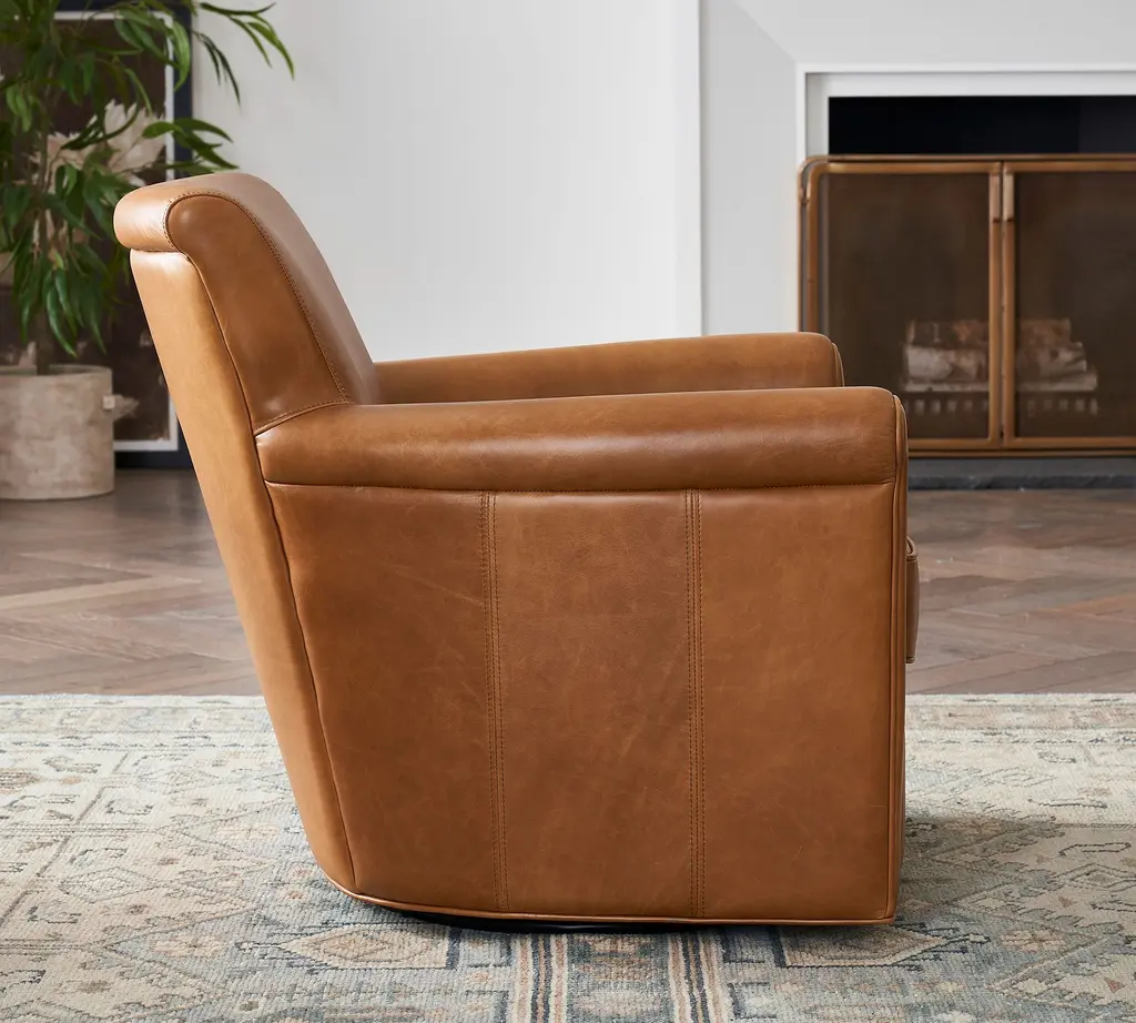 Irving Roll Arm Leather Swivel Chair