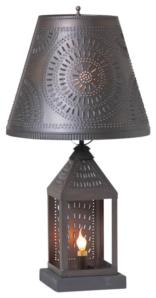 Irvin's Country Tinware Farmer's Lamp With Shade In Antique Tin - 23 X 15 X 15 Inches - 23 X 15 X 15 Inches - Grey