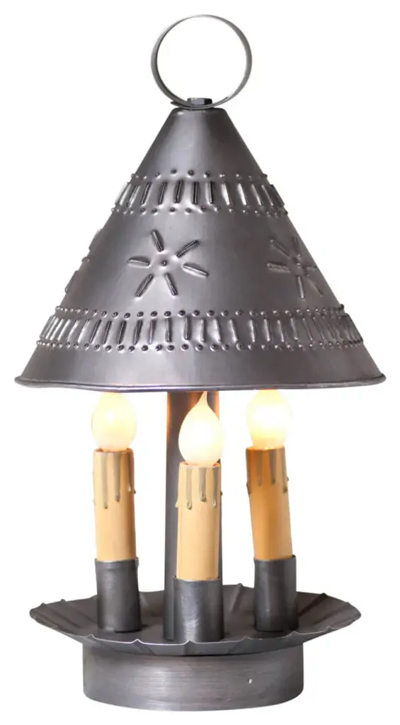 Irvin's Country Tinware Farmer's Lamp With Shade In Antique Tin