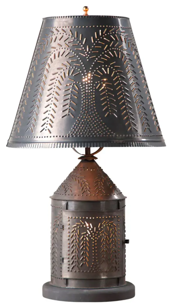 Irvins Country Tinware Fireside Lamp With Willow Shade In Kettle Black