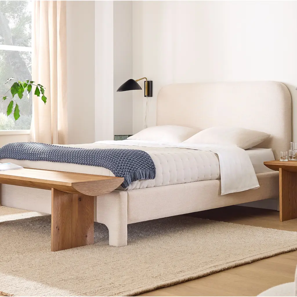 Adds an instant spark of glam to the bedroom. Subtly curved headboard softens the clean-lined frame. Crafted from solid, sustainably sourced wood. Contract Grade, so you know it's built to last.