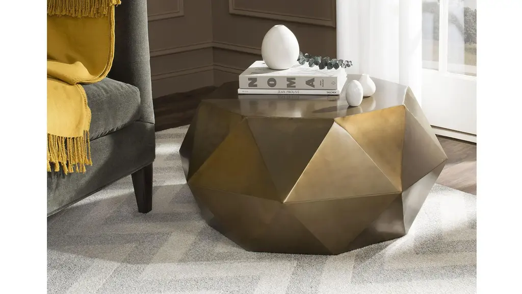 Modern geometry adds up to beautiful entertaining with the Isabelle Faceted Coffee Table. Crafted of iron with a gold copper finish, this stylish table is a sophisticated piece of art with a designer look, perfectly complementing urban chic living rooms or fashion forward city lofts.