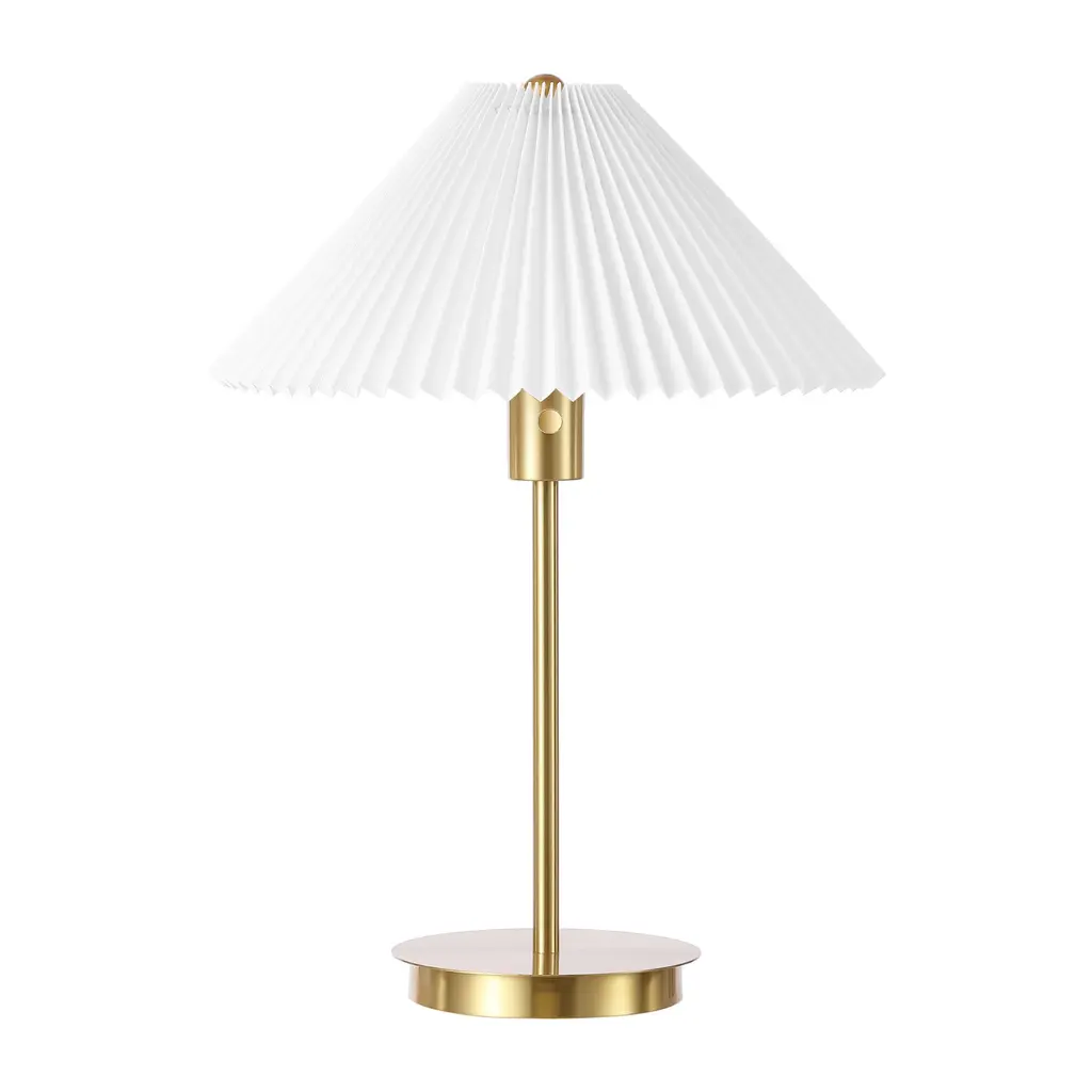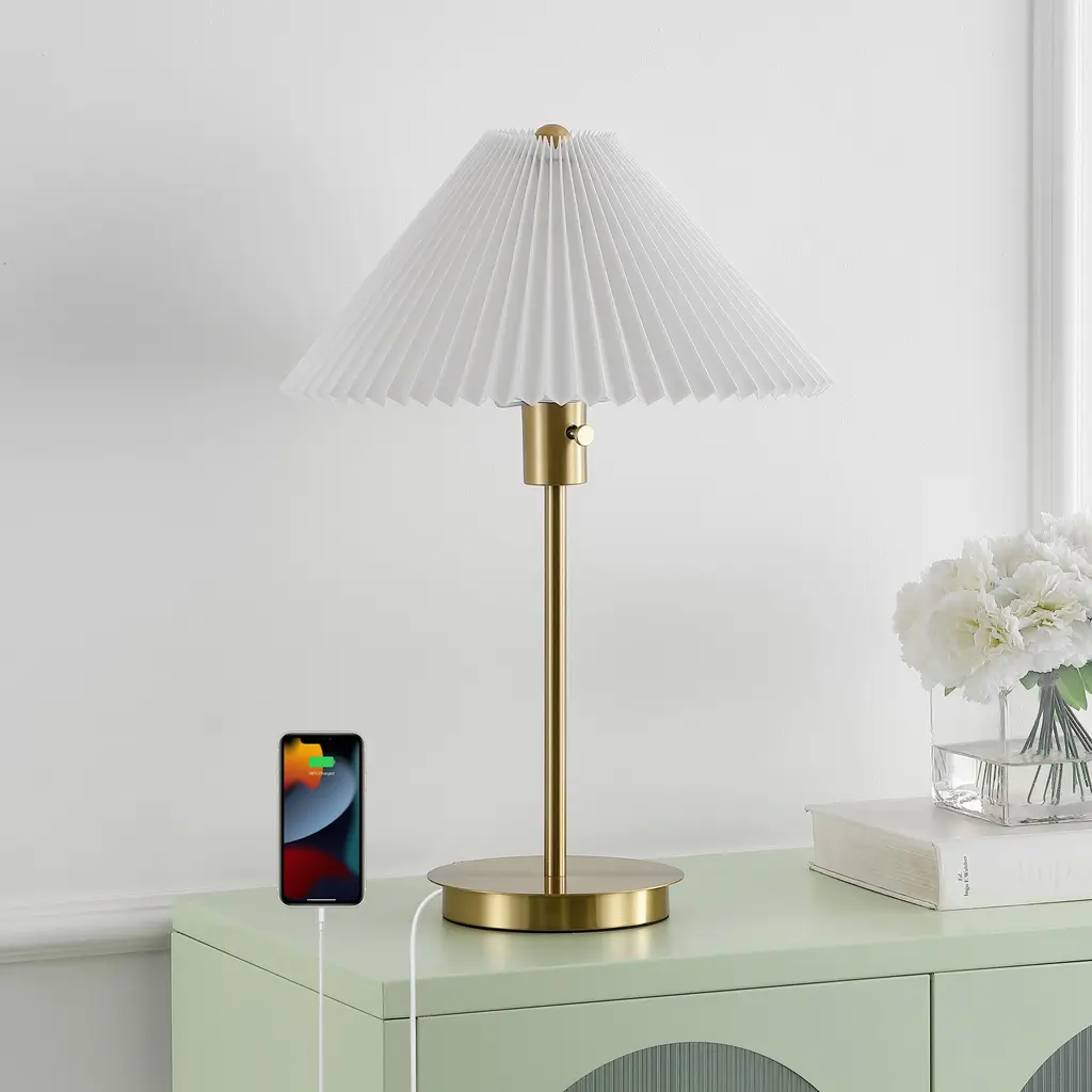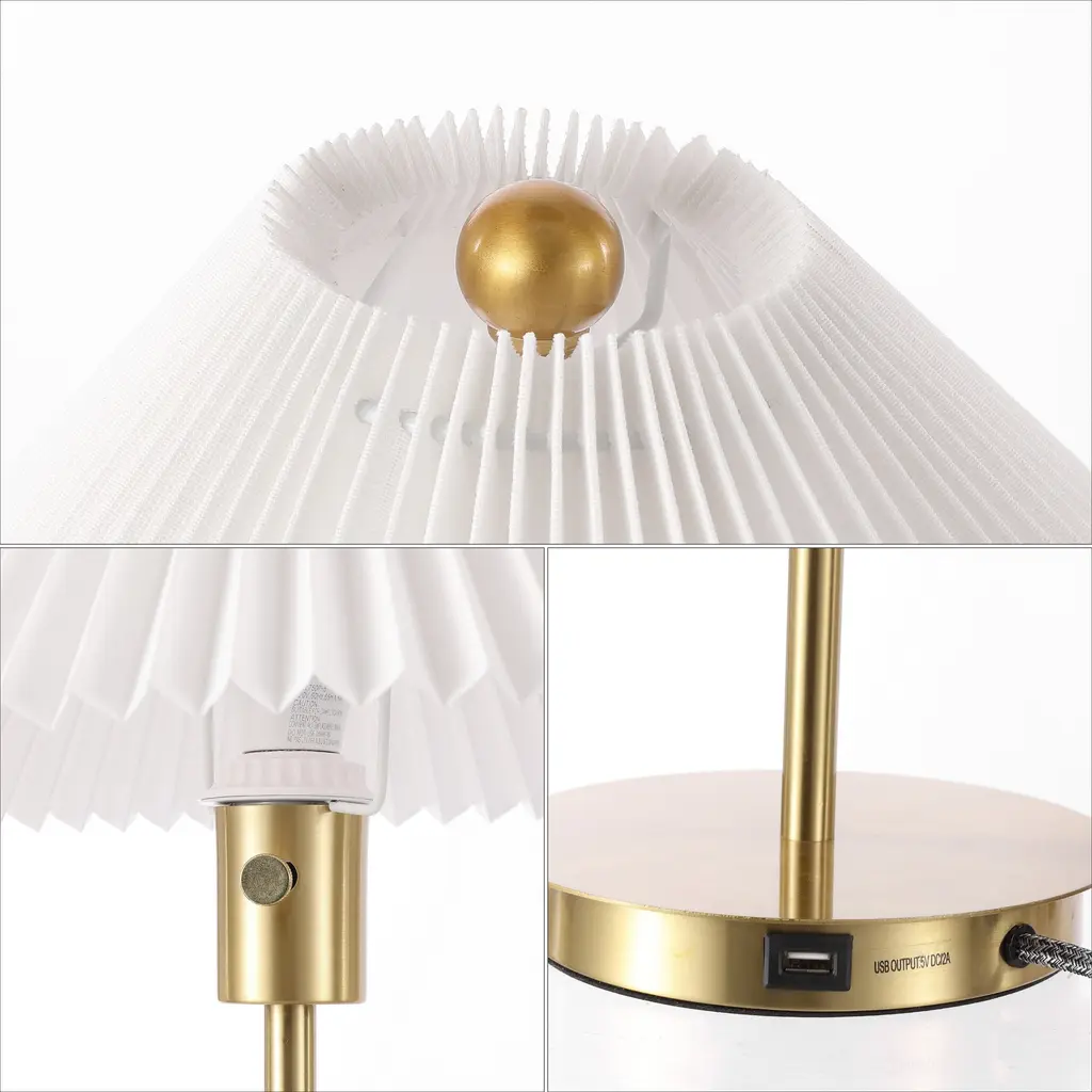 Isla 21.25" Modern Glam Metal Column Led Table Lamp With Usb Charging Port And Pleated Shade, Brass Gold/white, By Jonathan Y - Brass Gold